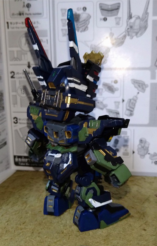 漆塗りっぽい感じにしてみたやで…、和風シールが厚みがあるのしか持ってなかったんが残念カナぁ、和風デカール探してみるかの…。#うみんちゅ杯プチ15 #BB戦士 pic.twitter.com/WjLa2piG85