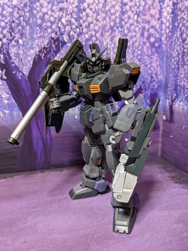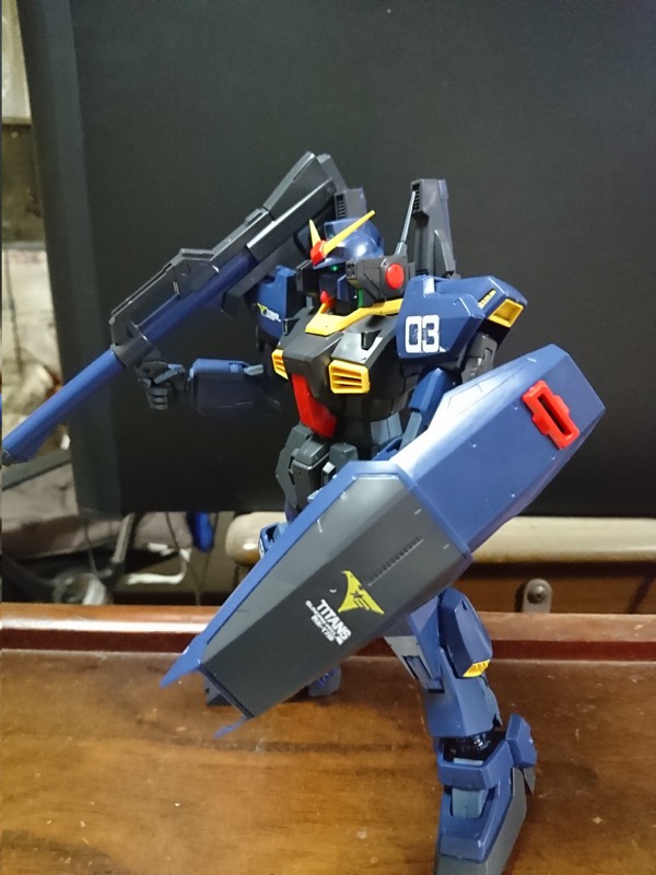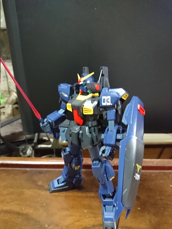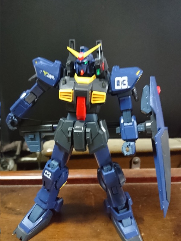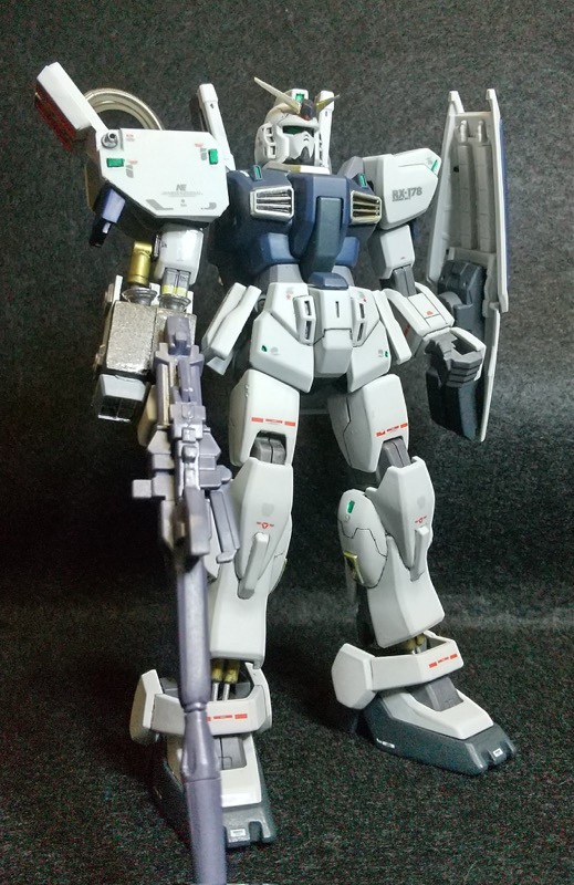 コミックガンダムUC獅子の帰還で登場したガンダムMkII です。HGをカスタマイズして製作です。ドーベンウルフもどきの右腕はプラ板で自作。色は想像で。金属パーツも活用しました。