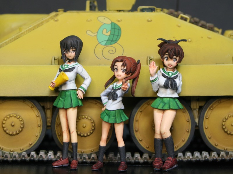 ヘッツァーは9年前のTV放映時に作った劇中設定画と差異多い公式キットを劇場版最終章仕様に大幅に改修しリペイント、それに合わせて生徒会3人組を制作しました。1/35スケールの瞳まで手描きしてみました。 pic.twitter.com/OGP0rc5YFj