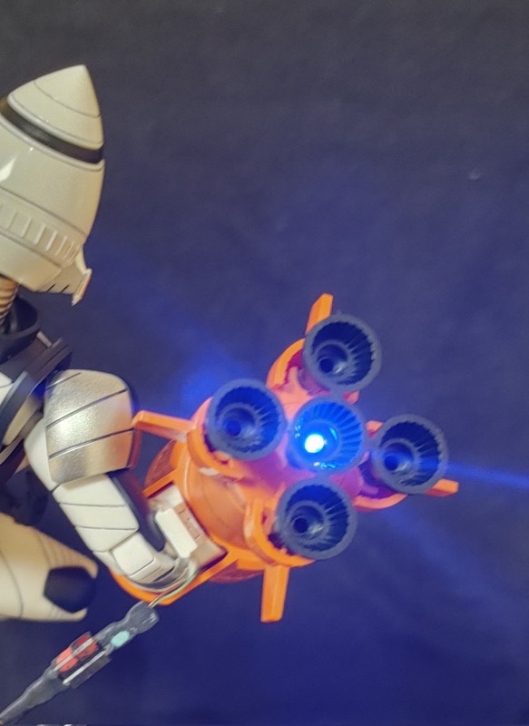 手芸綿をロケット後部に配置して青色発光で写真にするとイイ感じにリアル噴射ぽ✨
