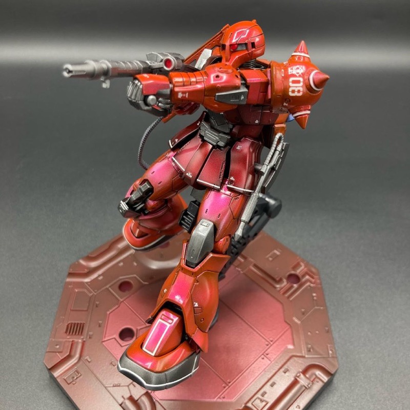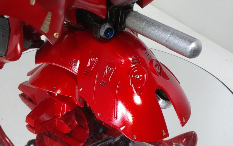 塗装はクレオスのジュラルミンシルバーをベースに、クレオスのブラッドレッド2をキャンディ塗装してます