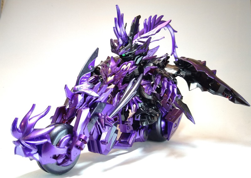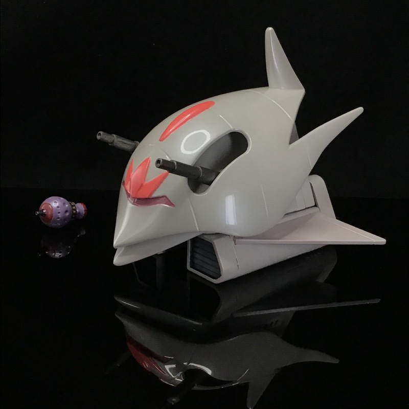 霞の鎧、体は色剥がすだけで良かったのですが、バイザーどセンターの合わせ目に悩んだり、メッキに負けないよう他を塗装したりをがんばりました!工作は小顔化とふんばり開脚のみ!でかい!笑 pic.twitter.com/FVWzovTv75