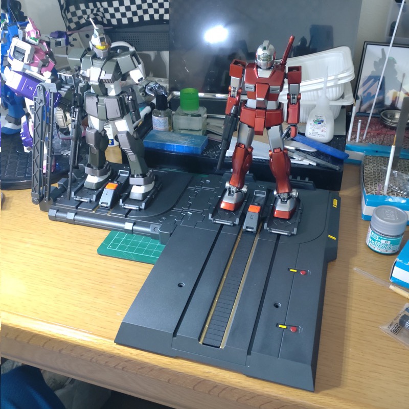 ガンダムベース限定のカタパルトデッキにダイソーのLEDライトを埋込んでます😉