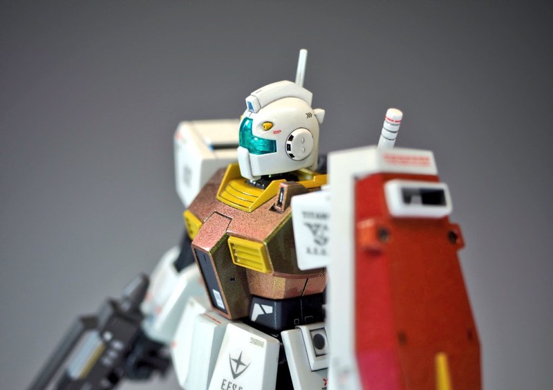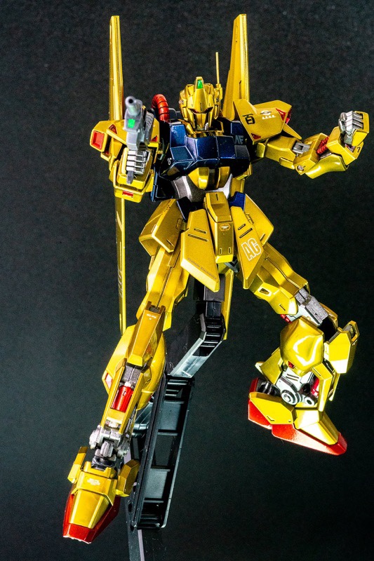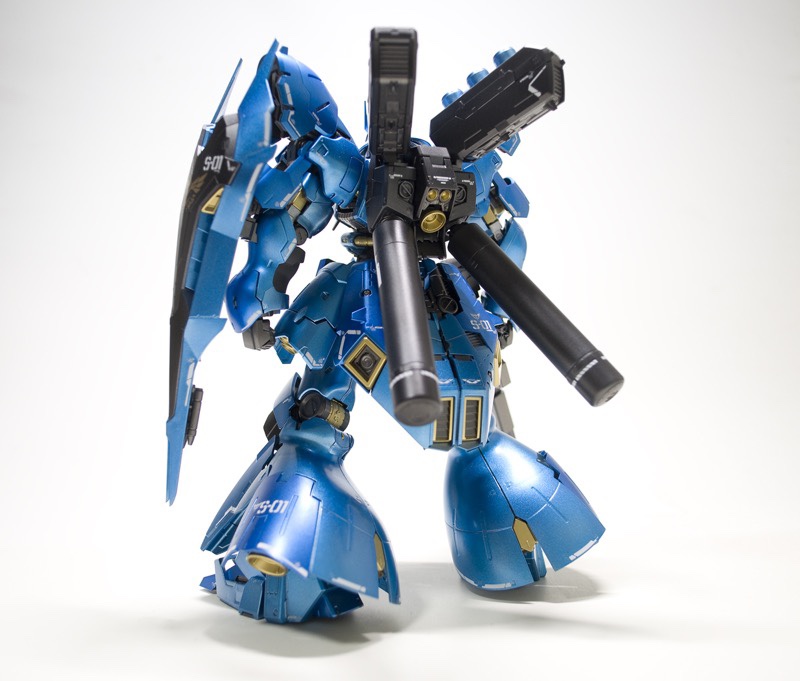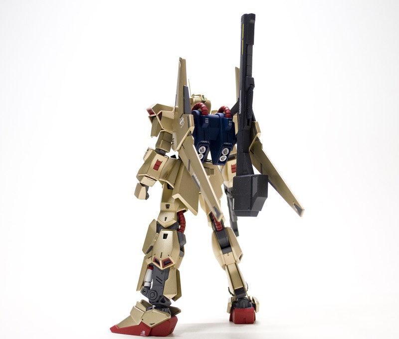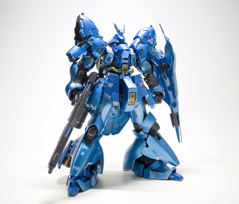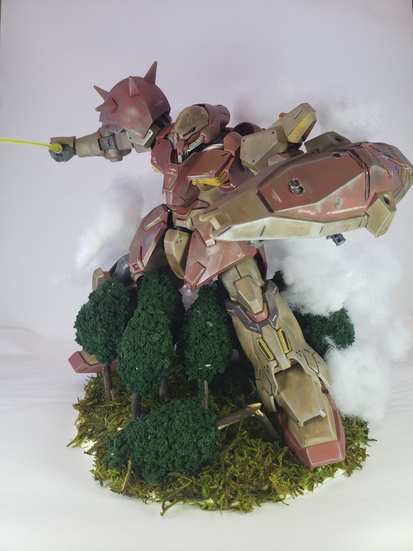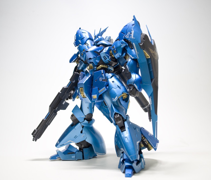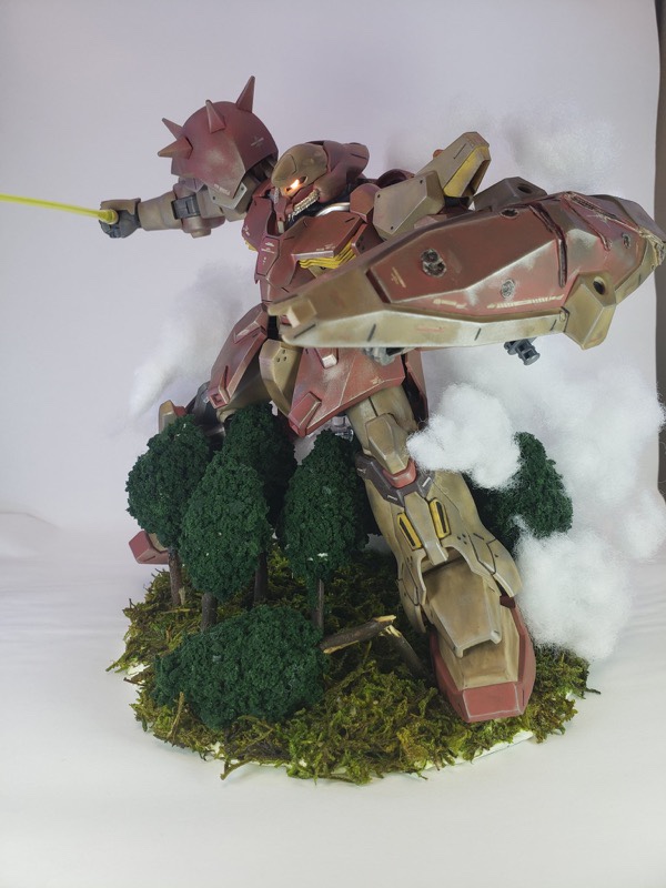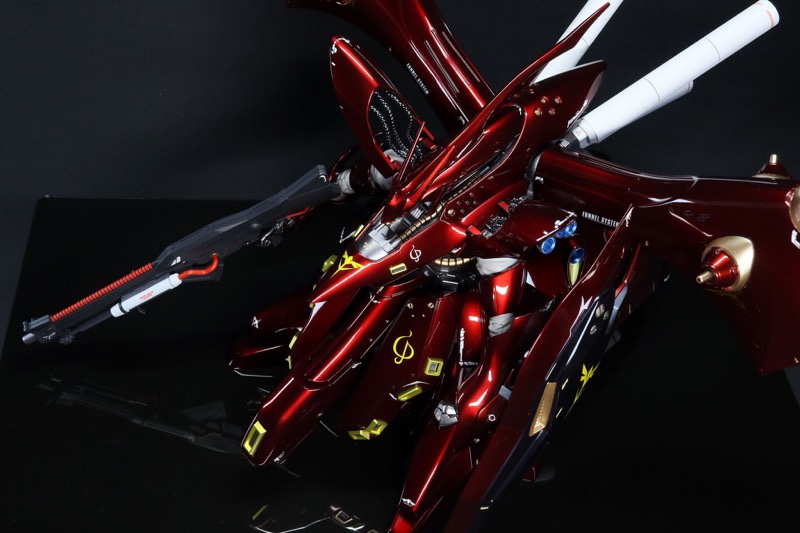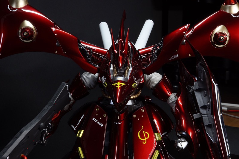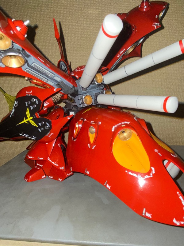 RGサザビーをキャンディ塗装で仕上げました。写真ではわかりにくいですが、下地はゴールドとシルバー2色を使って、キャンディレッドの色味を変えています。クレオス新色のクリアルージュがいい仕事してくれました。