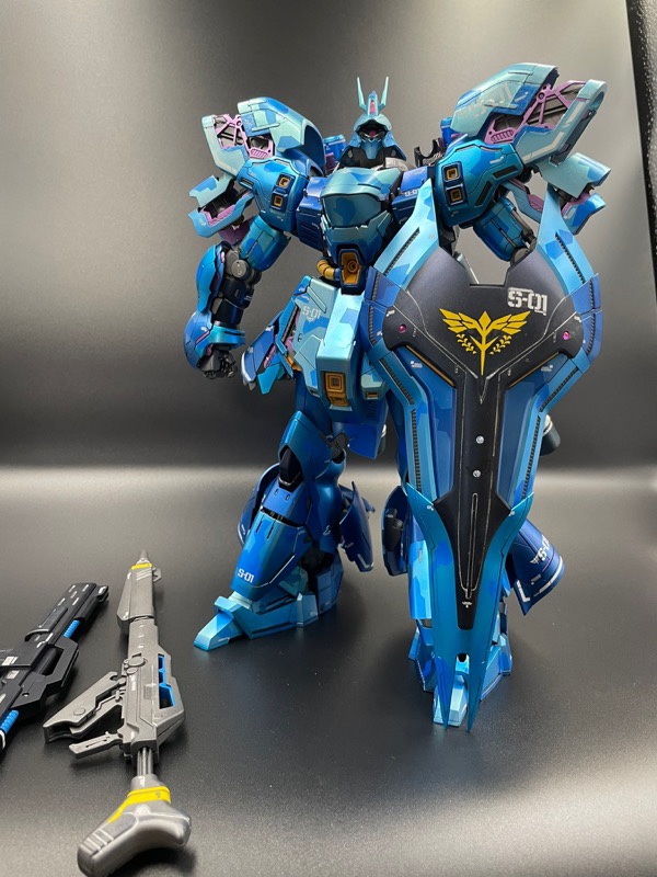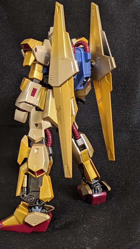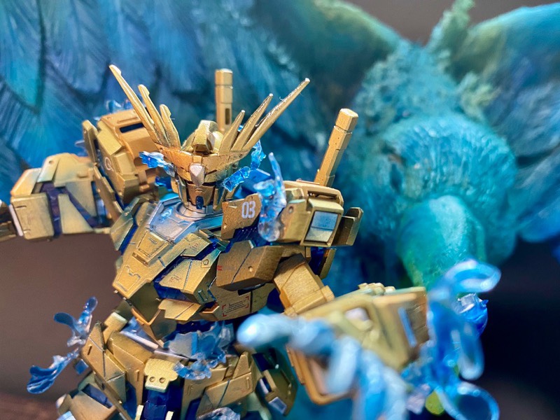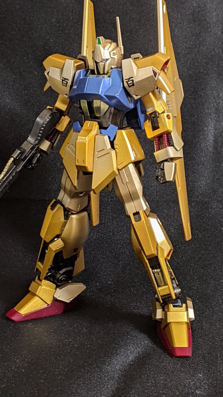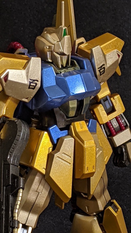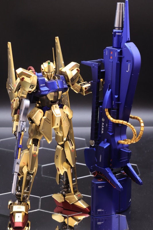 金の成型色が好きなので、そのままEXクリアーコートで光沢出し。胸部とメガバズーカランチャーはPCディープブルーのマット仕上げにして主張を抑えたつもりでしたが、色味が良すぎて却って目立つ結果になりました(笑)😅 pic.twitter.com/Fj780nVTrO