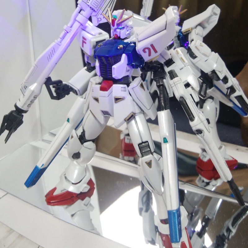 初稿版F91で参加します。パール塗装にスジボリに青墨入れをトライ。よろしくお願いします!#ガンプラ pic.twitter.com/7287Owis4N