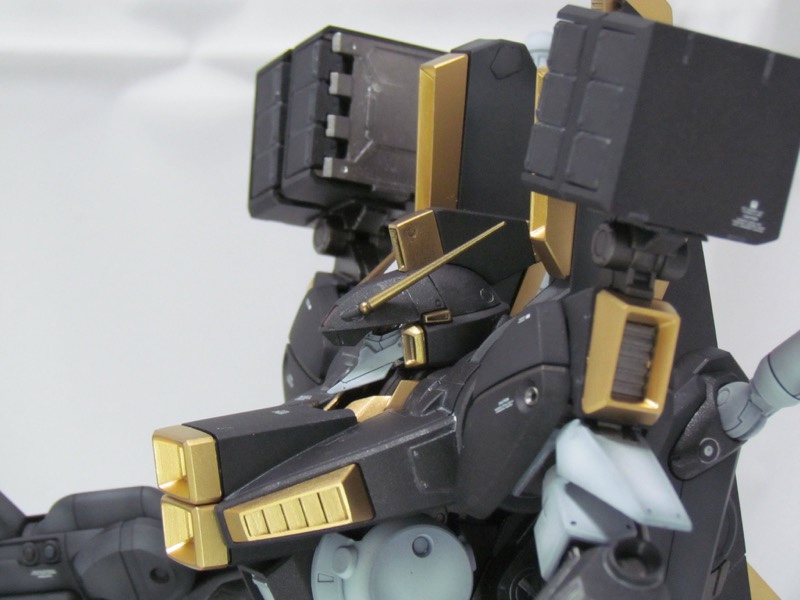 水性塗料で筆塗りをし、ガンダムマーカーゴールド、シルバー、ホワイトを使用しています