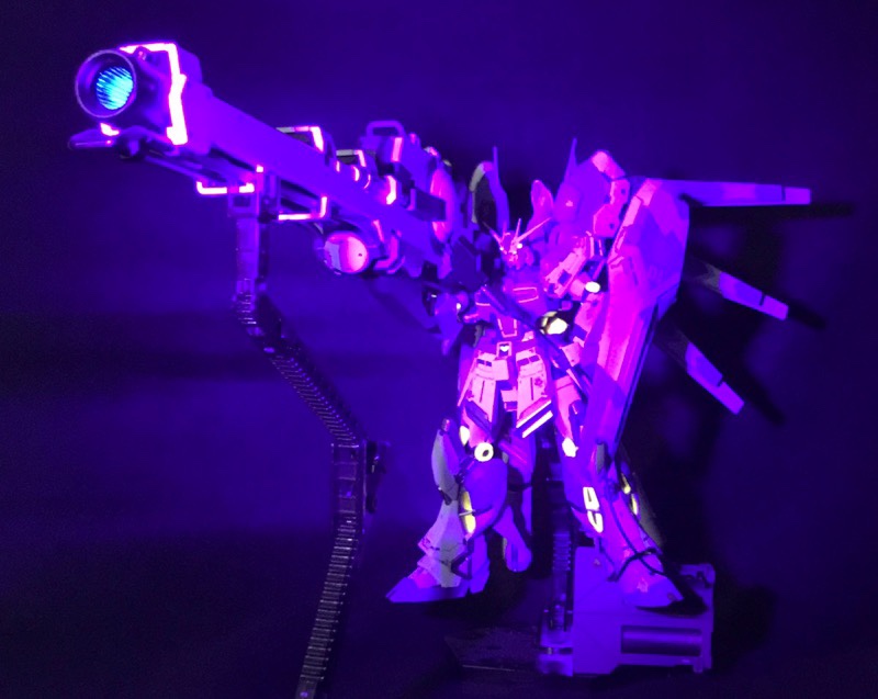 ブラックライトで目やセンサー、ビームサーベルが光るようにした。