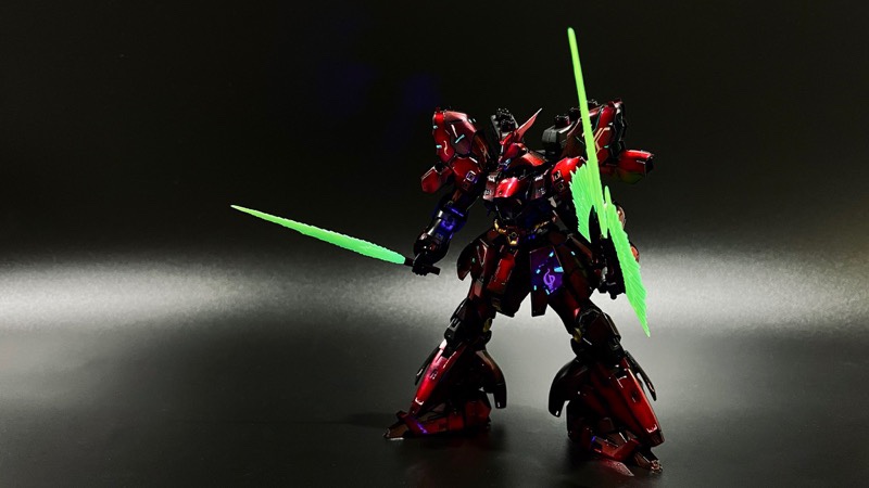 サイコフレームはメタリックグリーン&蛍光グリーンで表現