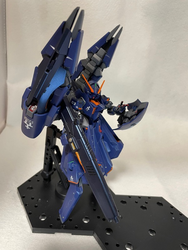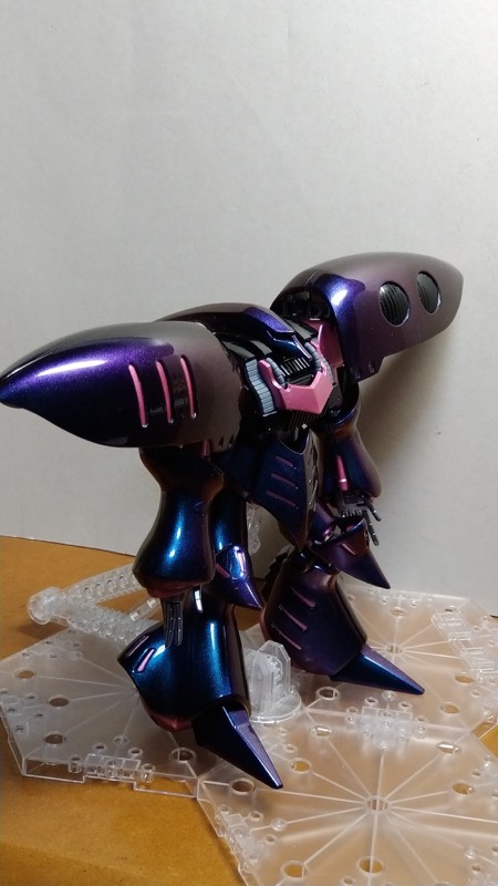 HGUCリバイブ版キュベレイをshowupさんのマジョーラアンドロメダIIで塗装し、ウレタンクリアと研ぎ出しで仕上げました。