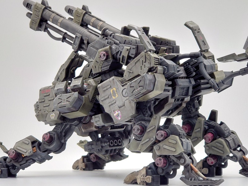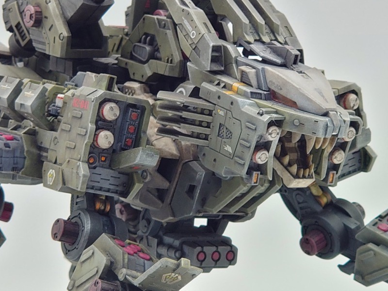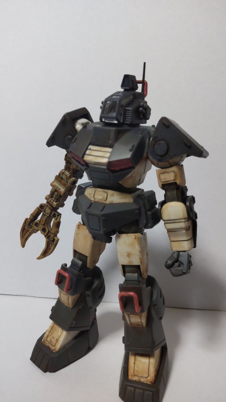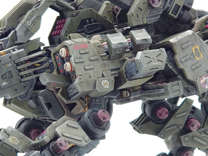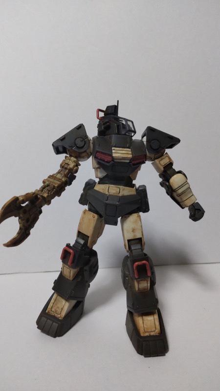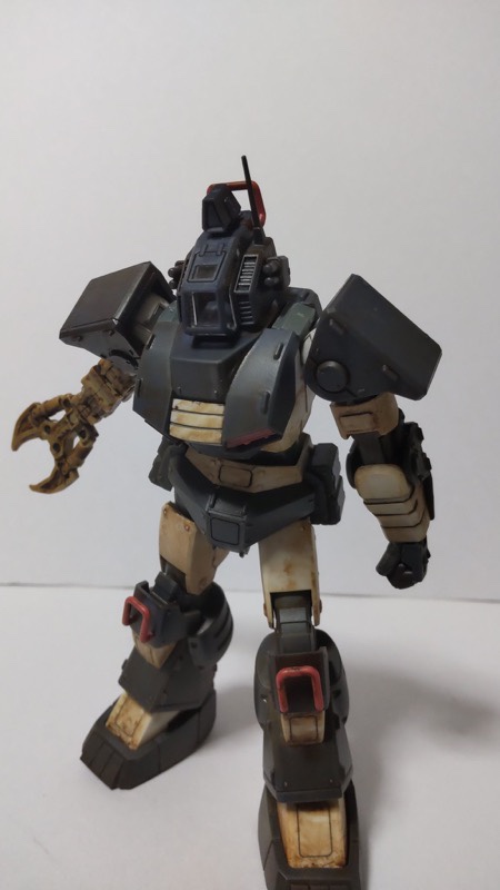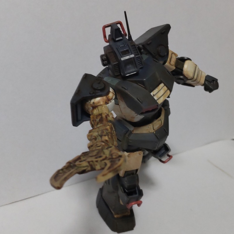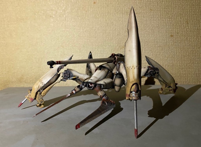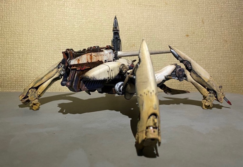スピアヘッド戦隊の戦いぶりを考慮して使い込んだ感じを出すために金属部分に錆を入れ地面に接する足の辺りには泥汚れを入れるなどしました