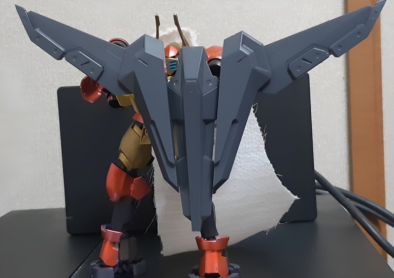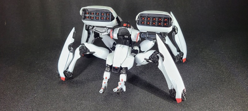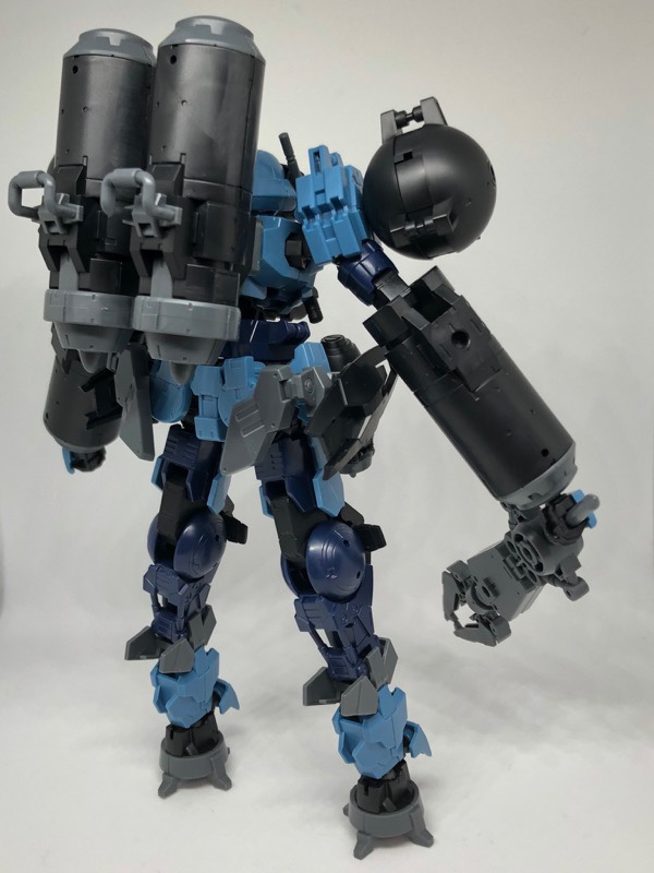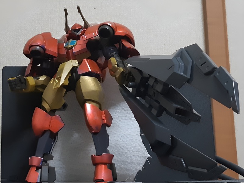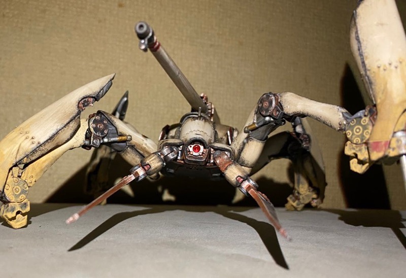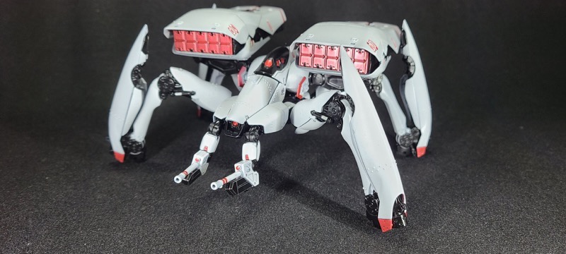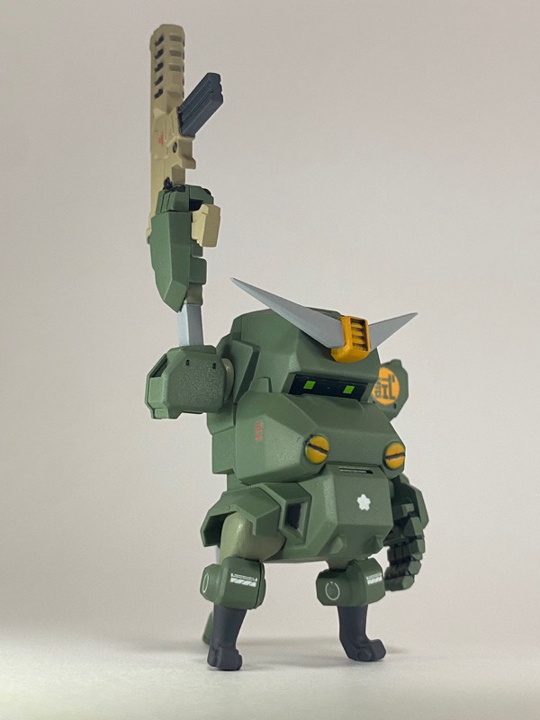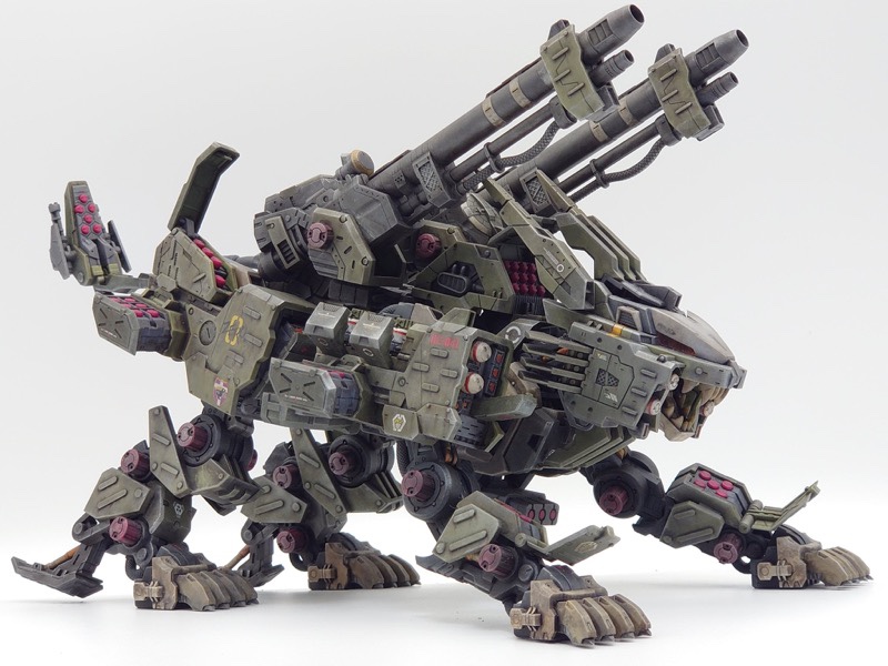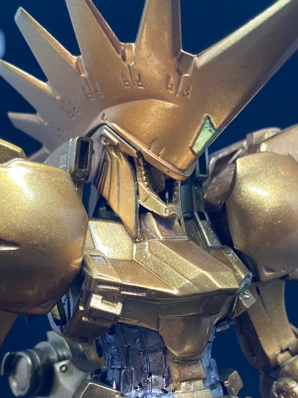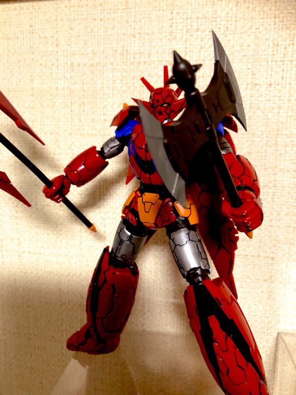 スピアヘッド戦隊の戦いぶりを考慮して使い込んだ感じを出すために金属部分に錆を入れ地面に接する足の辺りには泥汚れを入れるなどしました