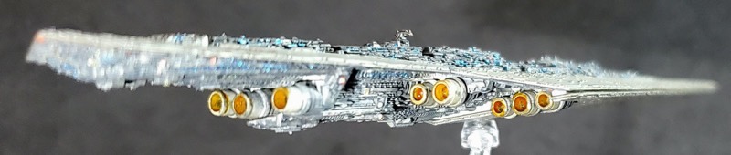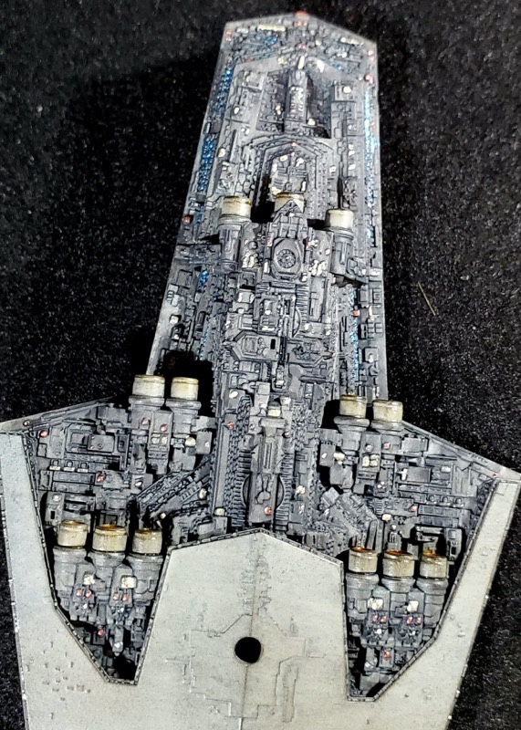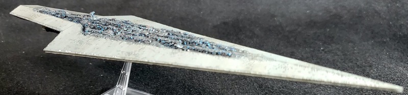 1/100000スーパースターデストロイヤーで参加します。ガンダムマーカーやエナメル塗料のメタリック色を利用して宇宙船から漏れ出る光とライトを表現し、装甲表面も薄く様々なグレーを塗り重ねて手の平サイズキットに巨大感が出るよう塗装してみました pic.twitter.com/ZPaNodTns3