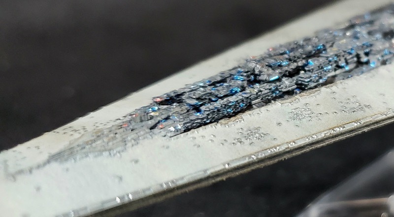 サファイアブルーとパープルのパール塗料の上塗りの上からウレタン塗装して磨き上げました!