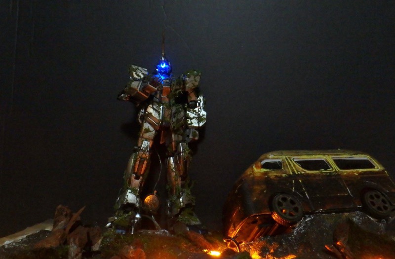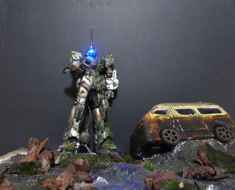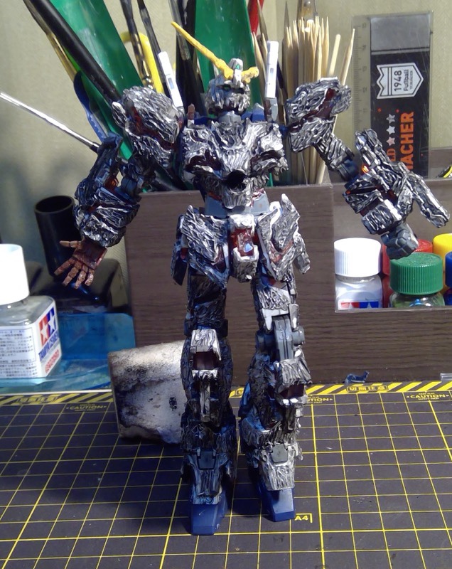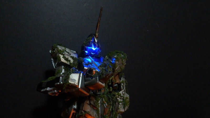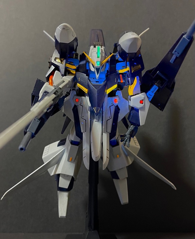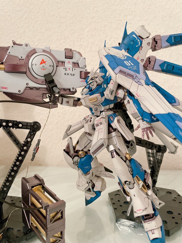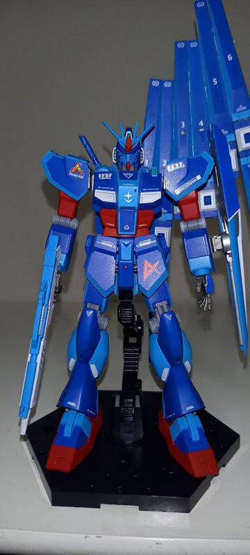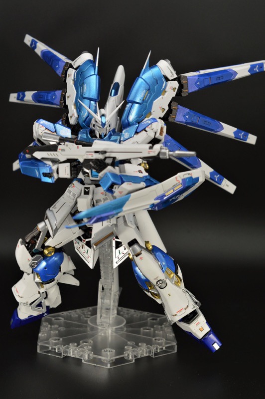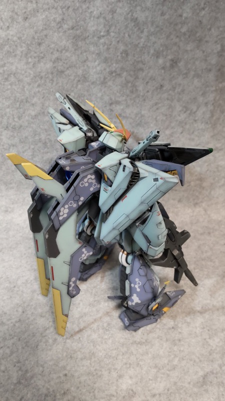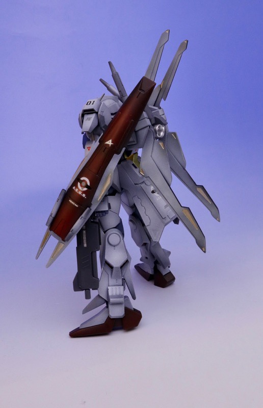 全体的に元のカラーリングのメタリック色で塗り、各所にブルーメタリックを打って よりメカっぽく見えるよう工夫。
