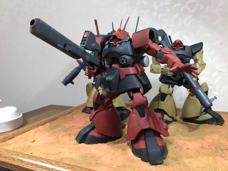 カーボン風塗装やスジボリ頑張りました!あと背景用のジオラマ的なものも✌️#うみんちゅ杯プチ17#ガンプラ#ガンプラ好きと繋がりたい pic.twitter.com/7KYMyK80SR