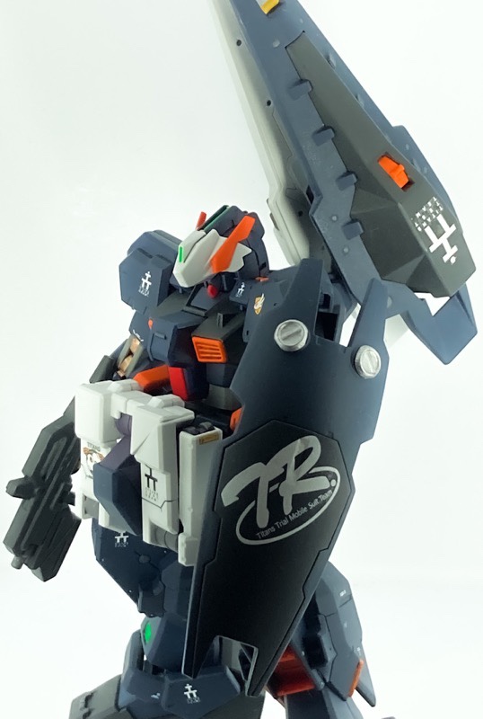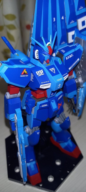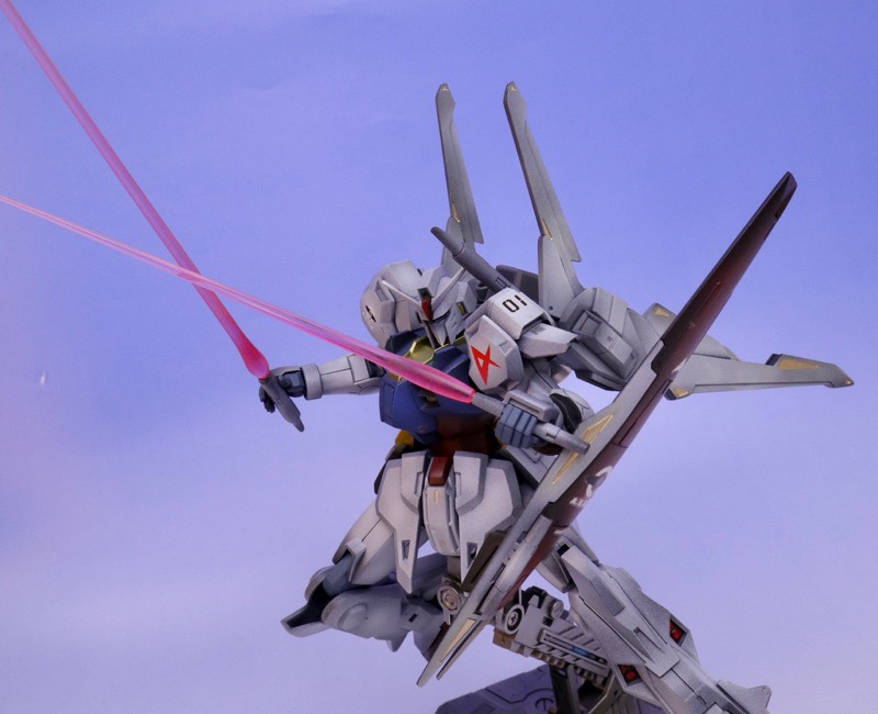 シャア専用機として赤に塗装された8号機と対になるように、トリコロールカラーで塗装されたアムロ専用機。
