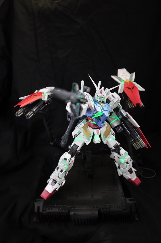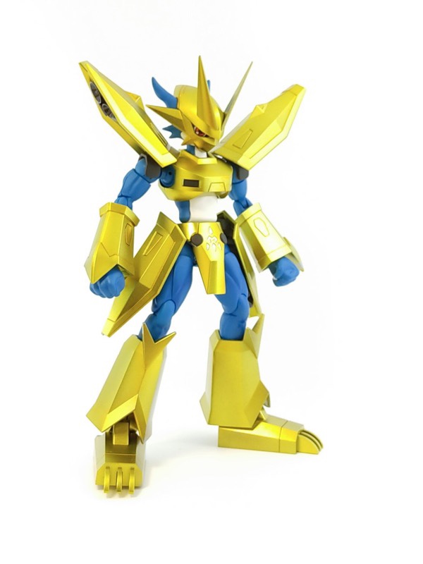 翼と周囲の羽根は艶消しパール+グラデーション、青の鎧は光沢塗装と各部位ごとに塗装方法を変えています