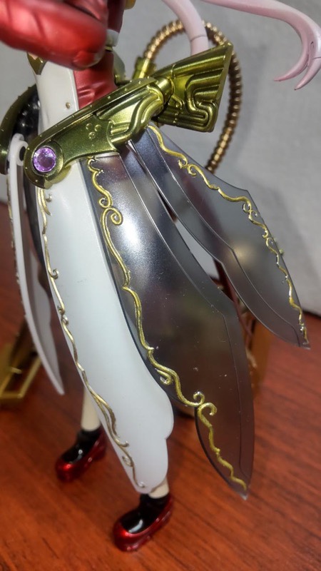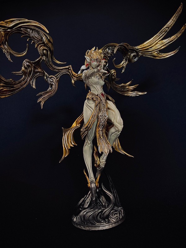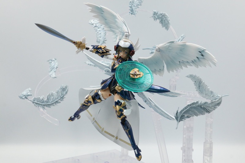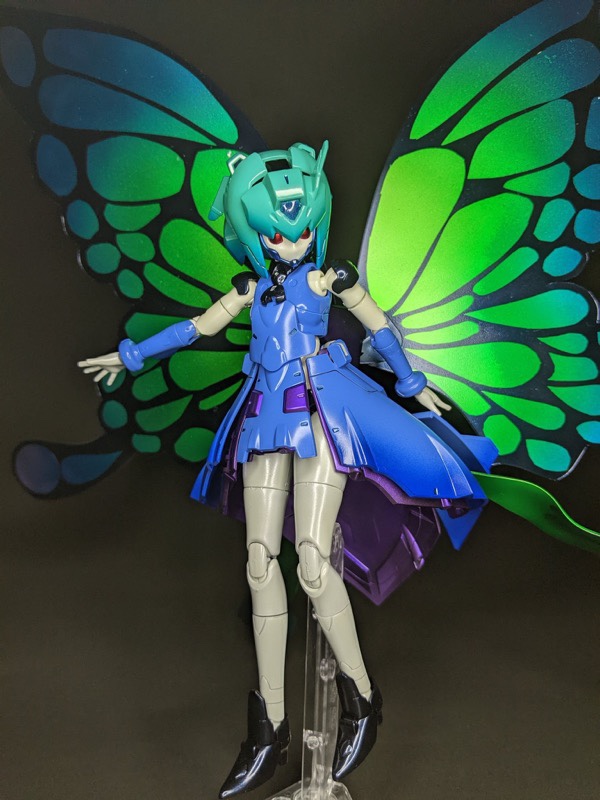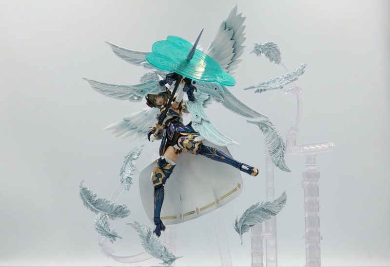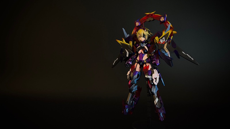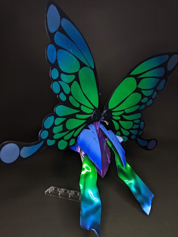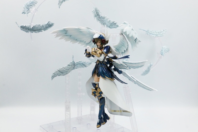 翼と周囲の羽根は艶消しパール+グラデーション、青の鎧は光沢塗装と各部位ごとに塗装方法を変えています