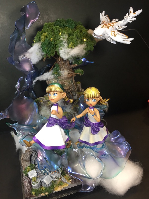 幼少期の二人が纏っている魔法の布衣や神獣ケトスやオーロラをパール塗装しました