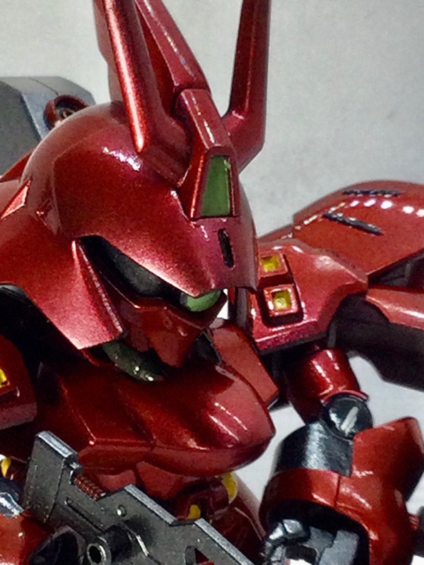 キャンディー塗装により艶のある仕上がりに、そしてライフル及びモノアイは緑色に光ります。是非、ご覧くださいm(_ _)m pic.twitter.com/iUHOLfkJ6f