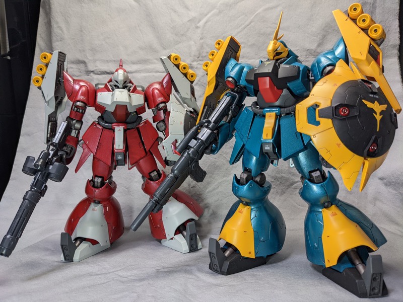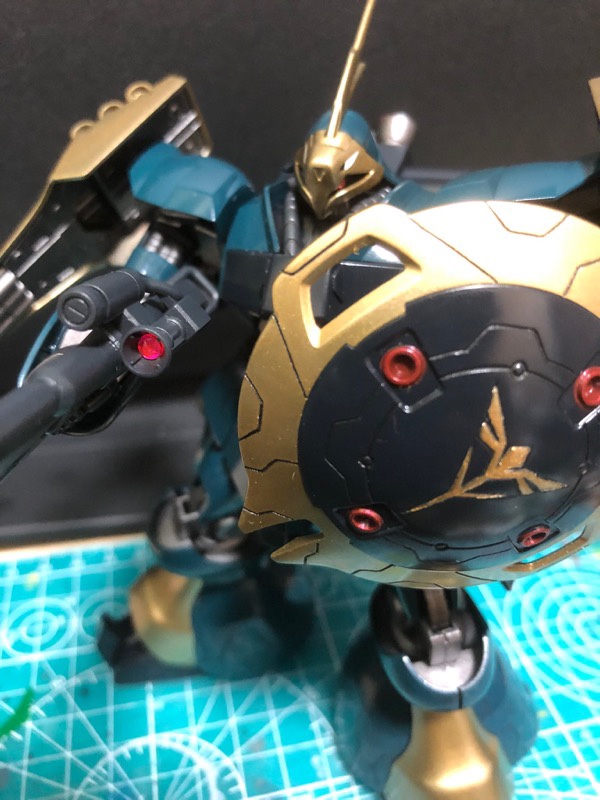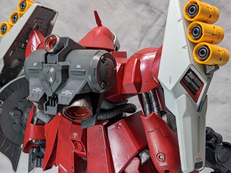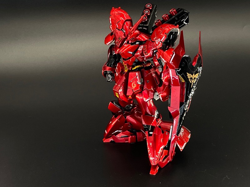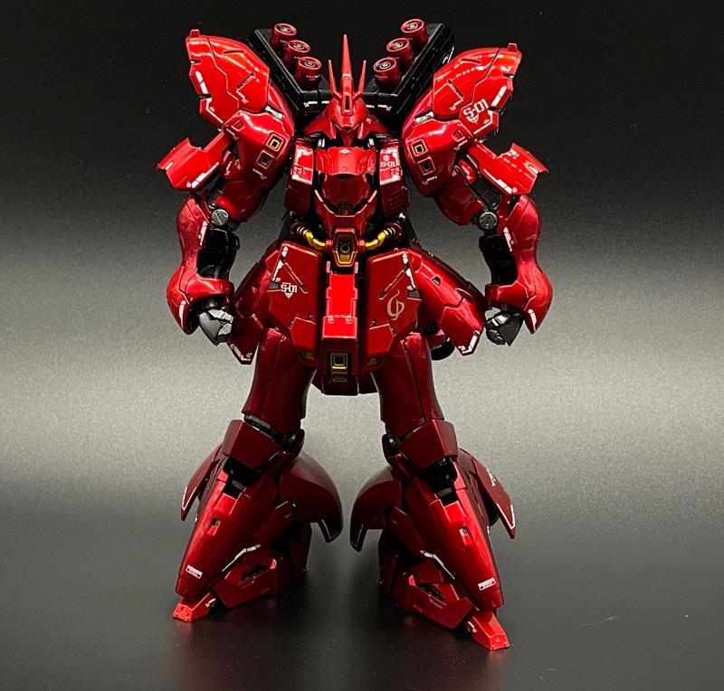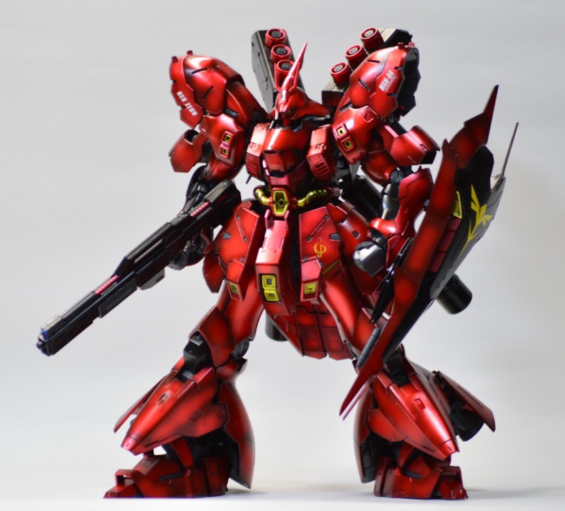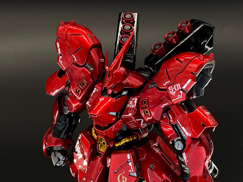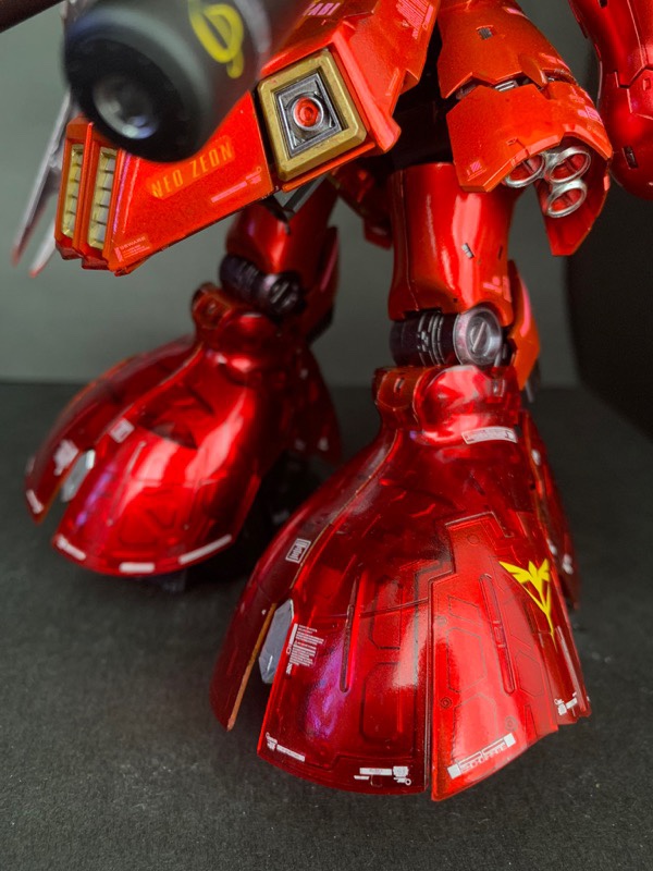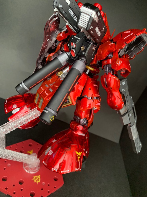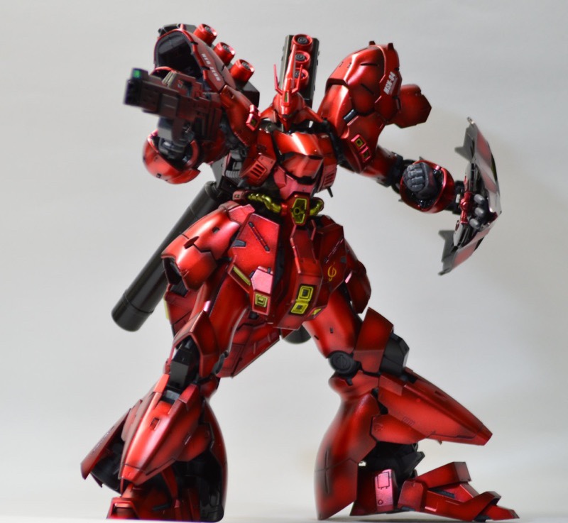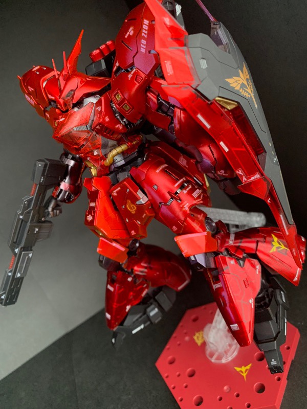 ベースはクリアカラーRGサザビーで、ガンダムマーカーのロイヤルメタレッドで全身塗装、シールドと膝から下のみパーツの裏から塗装してモールドが際立つようにしました! pic.twitter.com/c31AGo7K80