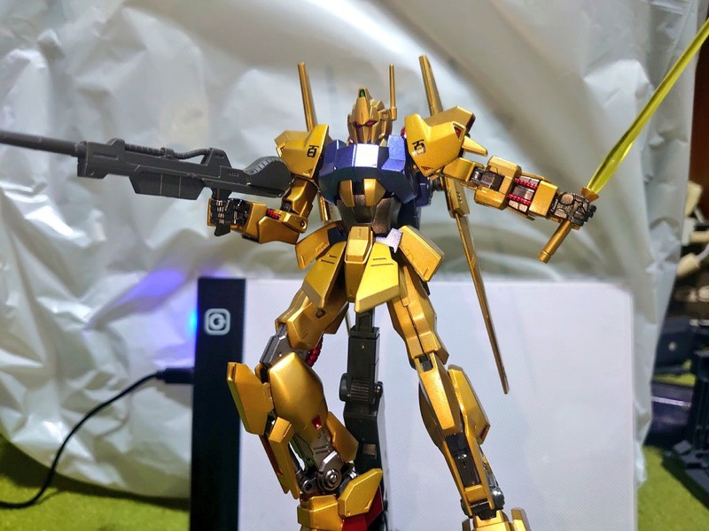 旧HG百式で参加いたします。金メッキ部分以外にもメタリックのレッドやブルーを使いましたのでピカピカです。 #うみんちゅ杯2022春 pic.twitter.com/GKhYzuhdyp