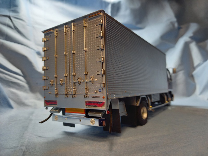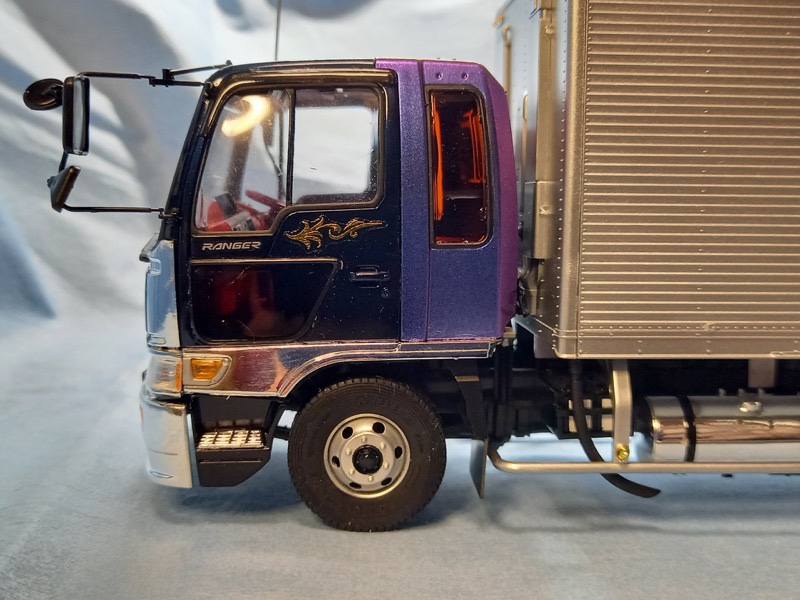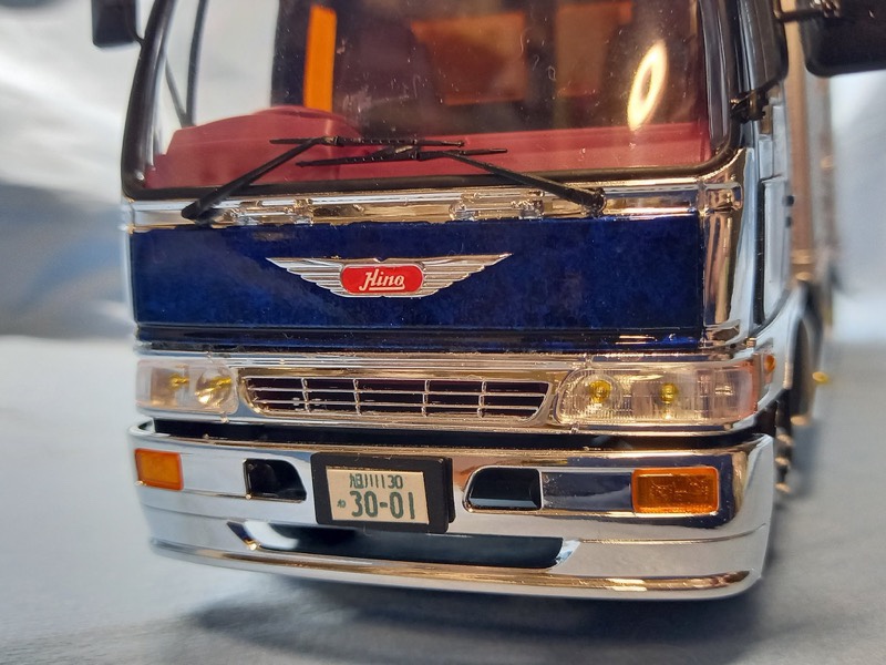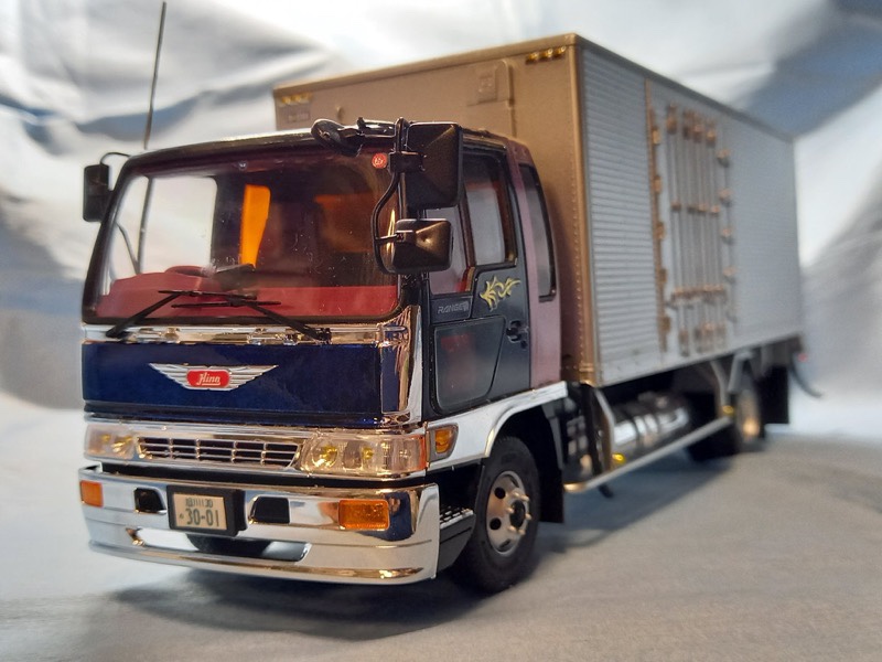 先日完成したフジミの日野ライジングレンジャーです。フロントパネルはラップ塗装仕上げ、ベッドパネルは100均のネイルパウダーで塗装しました。 pic.twitter.com/wgIe1zRGED