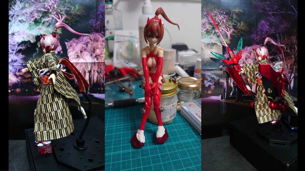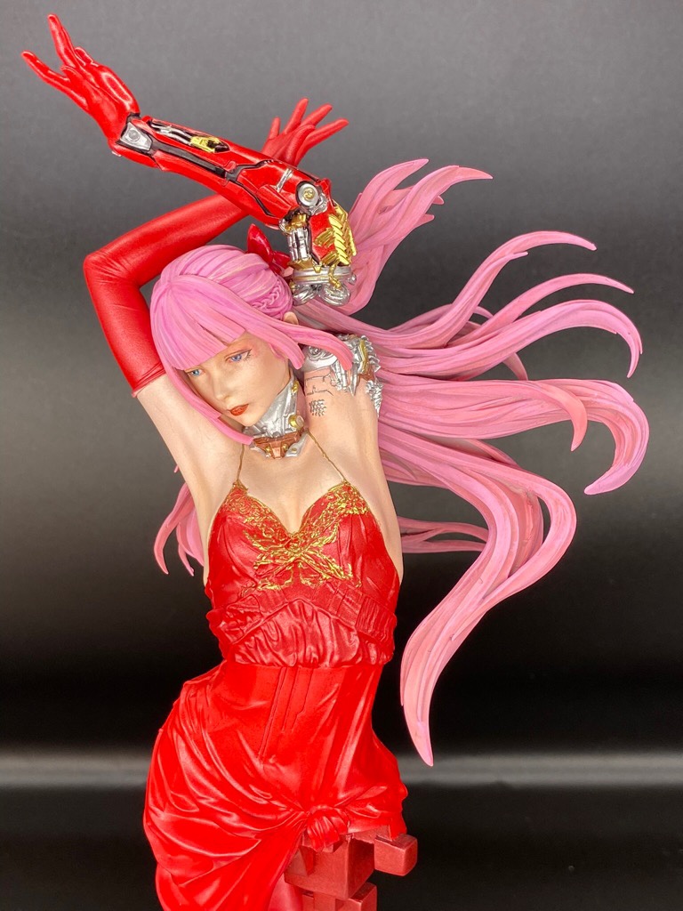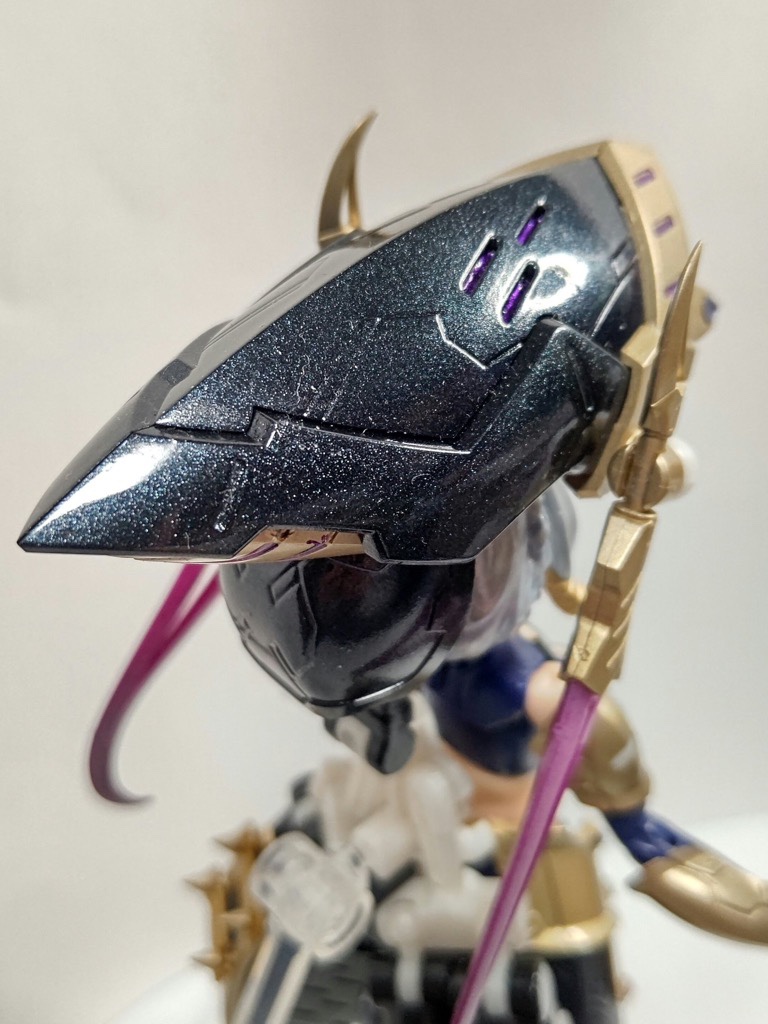 第4回美プラ用で作成してたので気が引けますが二作目です。髪と武装をミラークロームにクリア塗装してます。