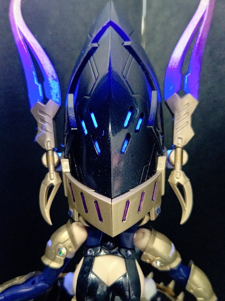 衣装部分にガイアノーツの蛍光カラーで塗装、蛍光グリーンの部分は上からうみんちゅパールを吹いてます。