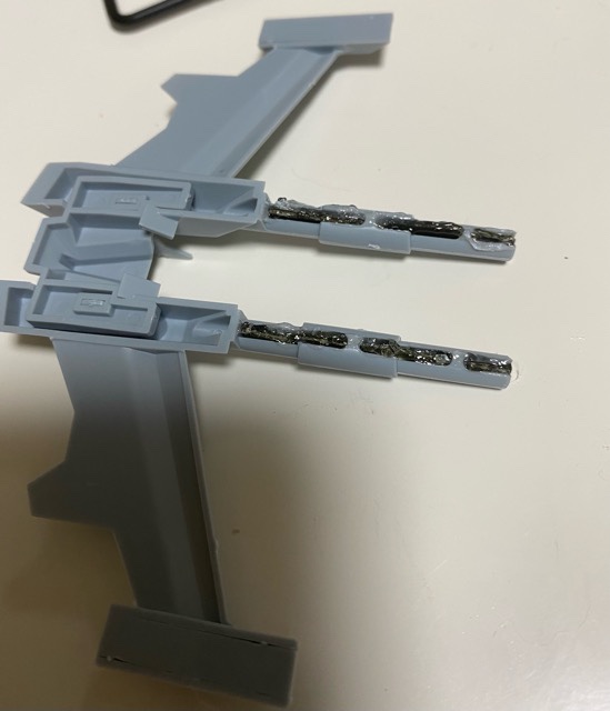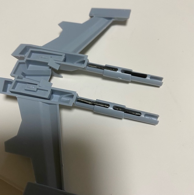 銃の部分が思いっきりにくぬきで穴が開いてしまっています。