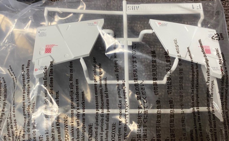 塗装とタンポ印刷済みのパーツが個包装されています。エアーを噛まないようにそれぞれの包装に空気穴が開いていました。