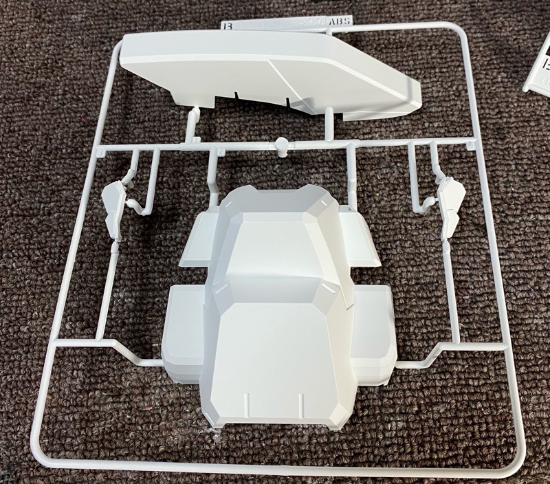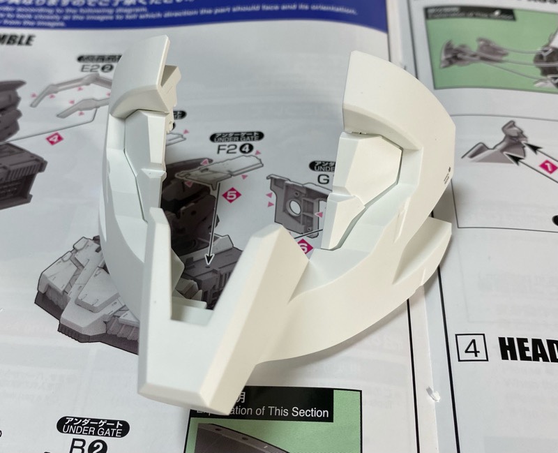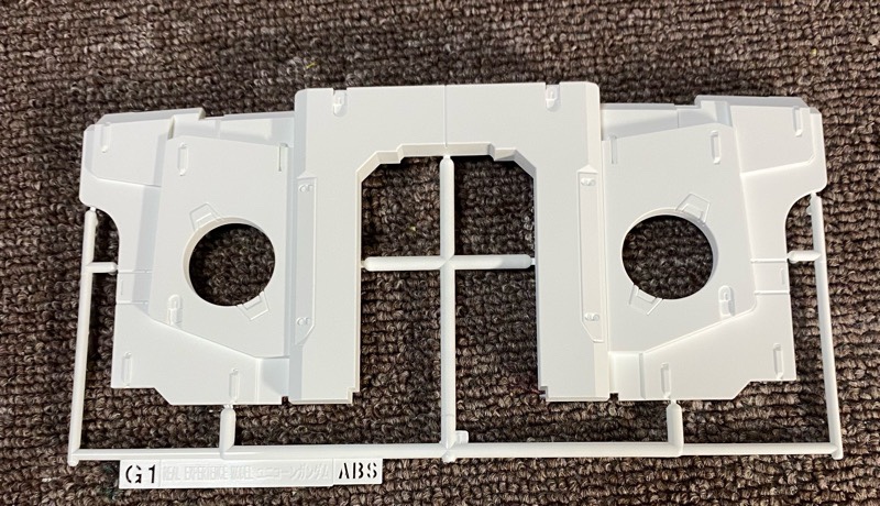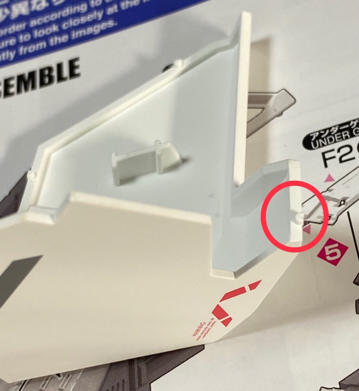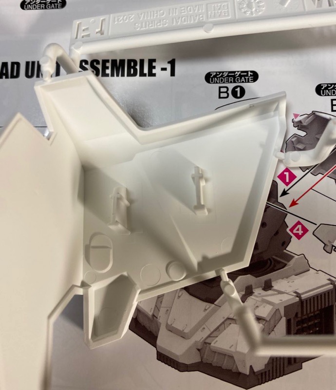 この2段階でカットする必要があります。今回は白色なので目立ちませんが、切れ味のいいニッパーでカットしないとカット面が目立ってしまうというなかなか厄介なゲートです。