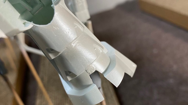 サフを吹いてみて、合わせ目がどれくらいきれいに消えているか確認します。