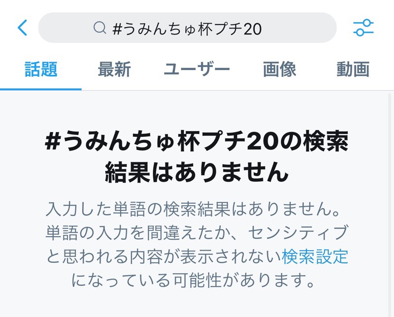 例えば「#うみんちゅ杯プチ20」と検索するとこうなります。