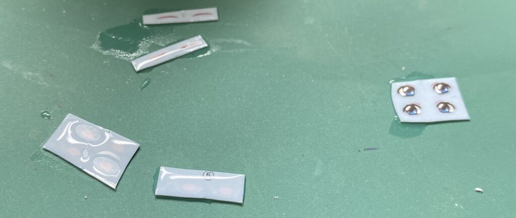 マークセッターを塗布したら、いよいよ目をくっつけていきます。