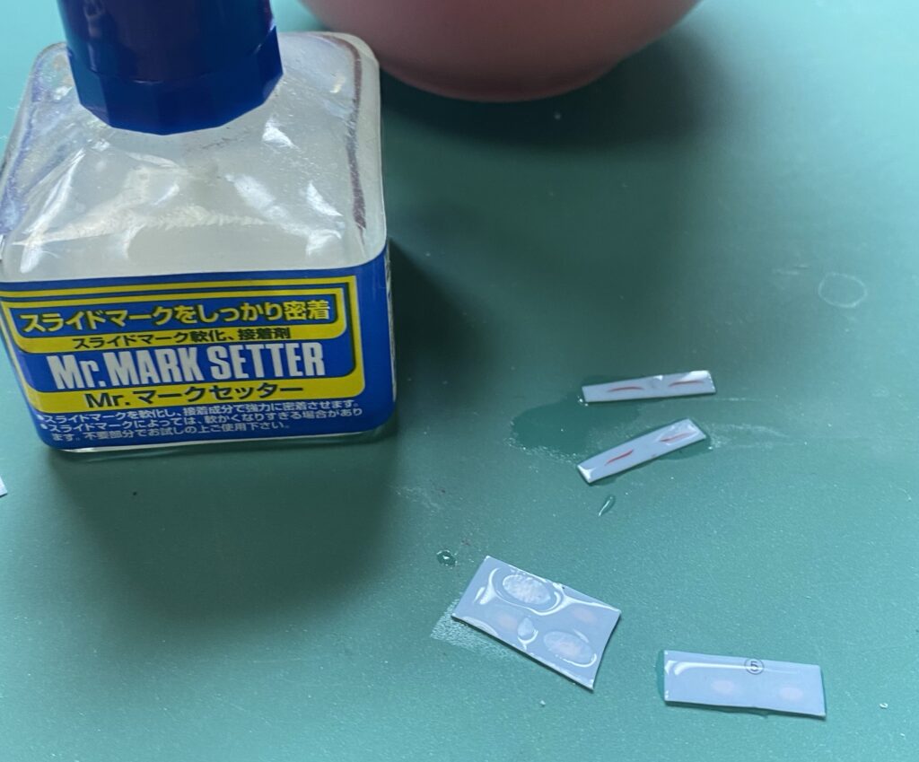 デカール糊を水につけて一回落としてしまい、マークセッターをつけていきます。