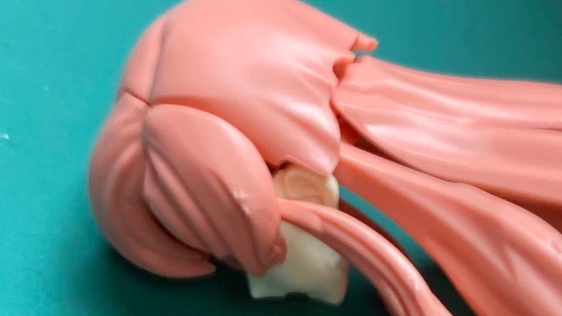 二つを「かちっ」と組み合わせるだけで、上にも下にも稼働しつつ、抜けない肩関節ができます。
