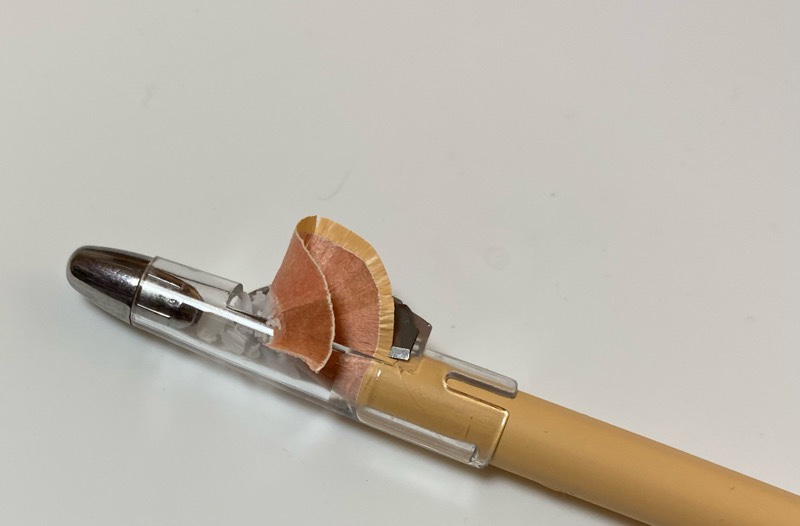 クレオスさんのパーツピッキングペンシルは先端を付属の鉛筆削りで削ってメンテてできる