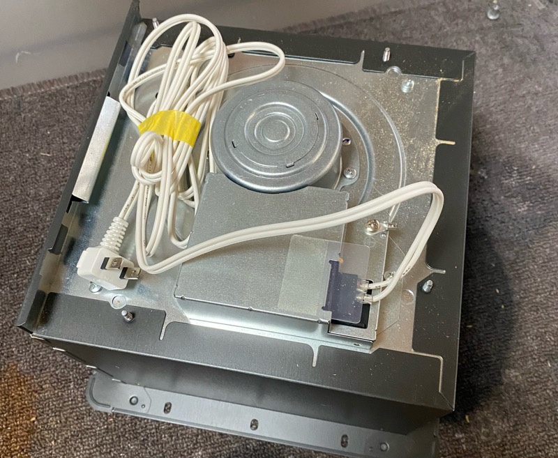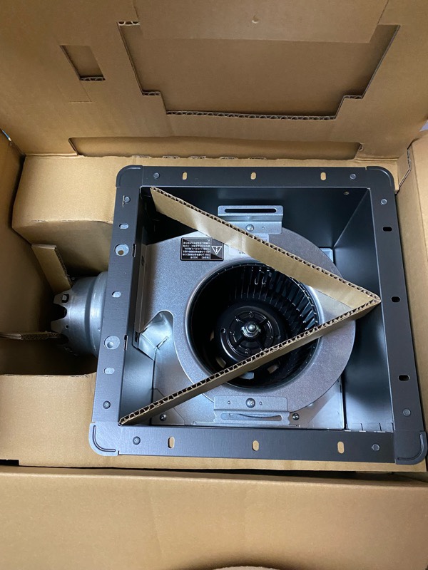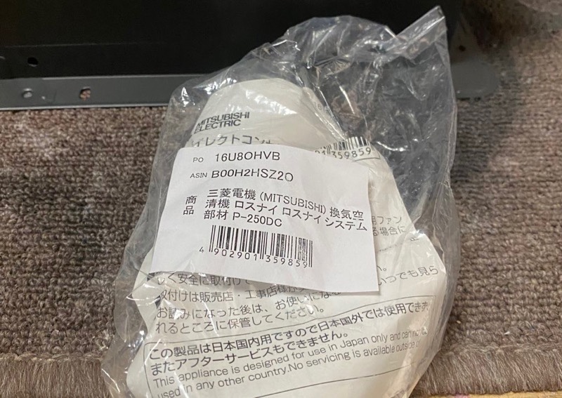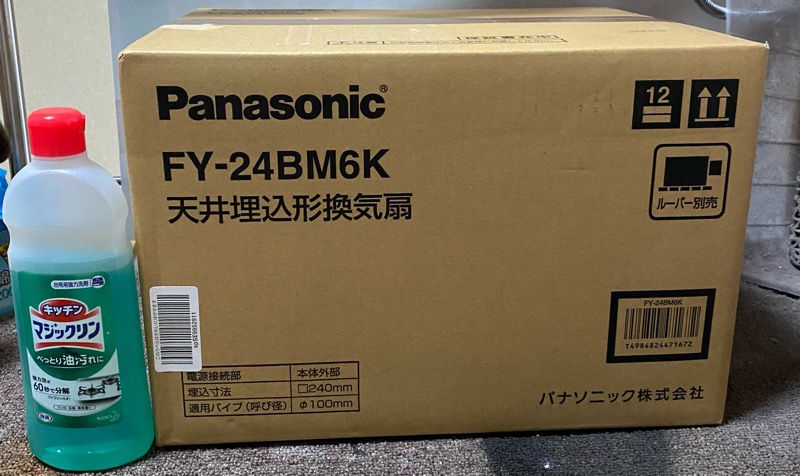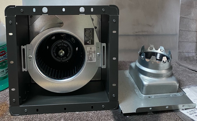 箱から取り出します。説明書がついていますが本来はキッチンなどの換気扇用に使うためのファンなので、塗装ブースを作るために使用する我々にはほぼ役に立ちません。注意事項が書いてあるのでそちらは目を通してください。