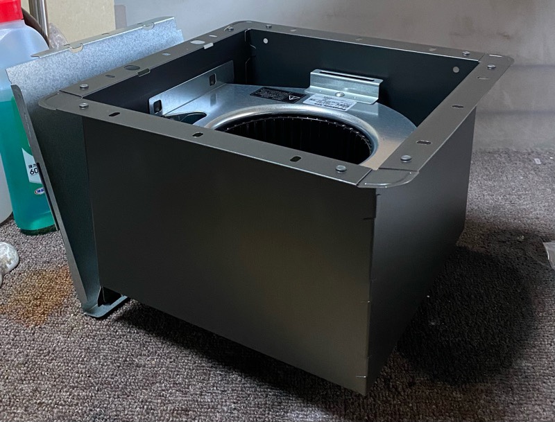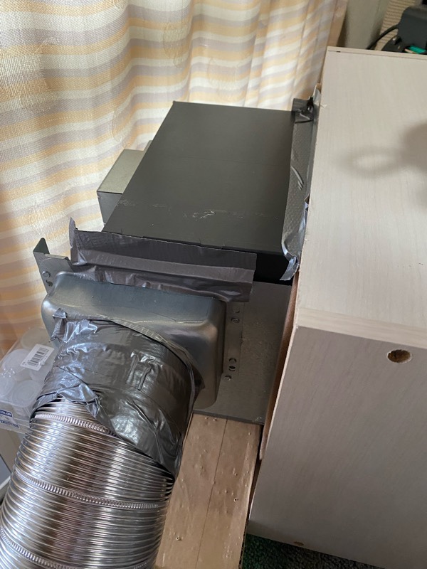 もっと面倒だと思っていたのですが、箱を組立てて、くりぬいて、ファンをつけてプラグコードを接続して、ダクトホースを接続、網を買ってきてフィルターを付ける。