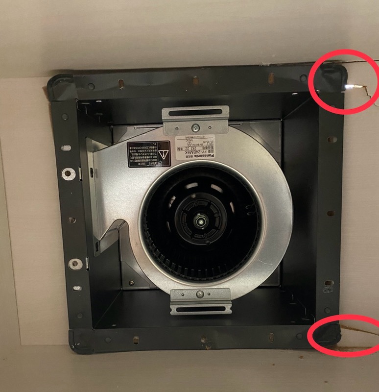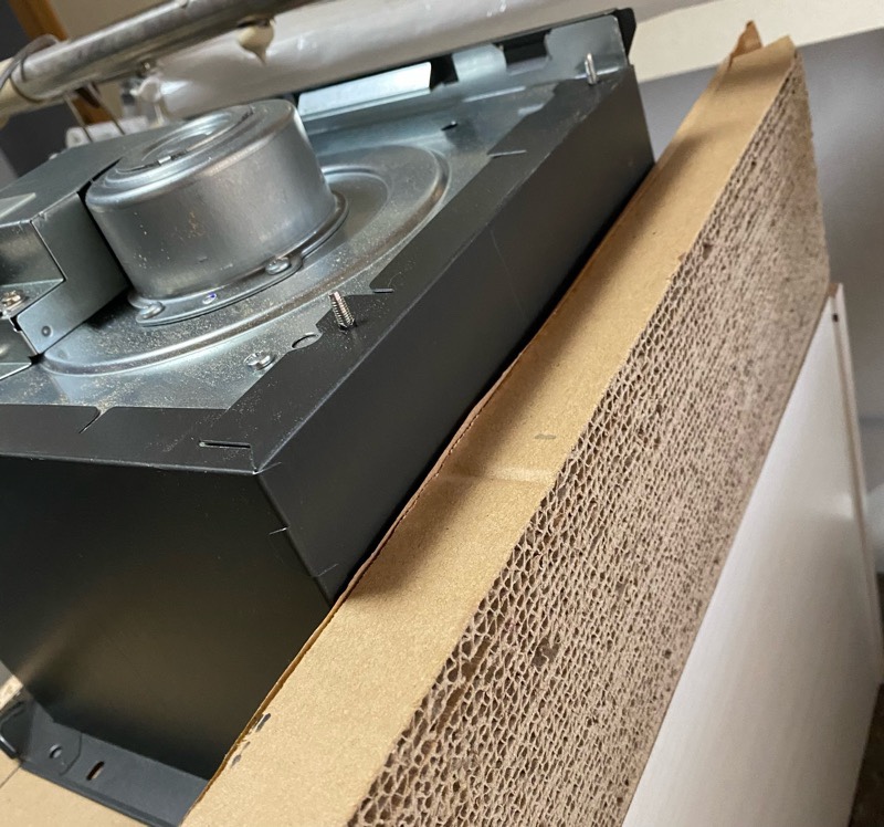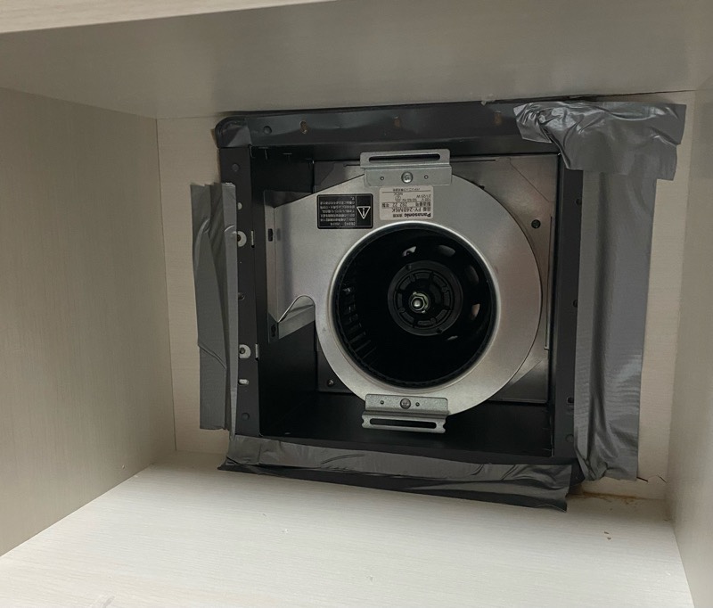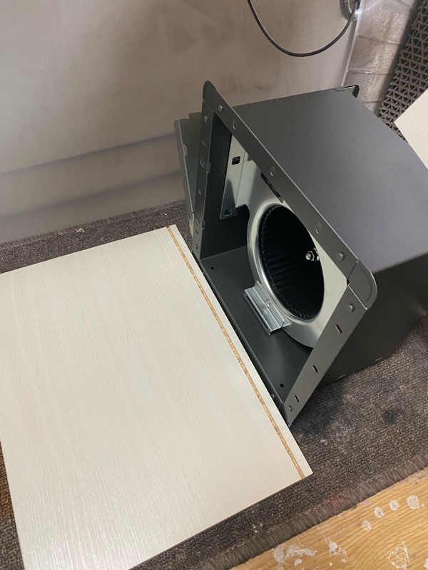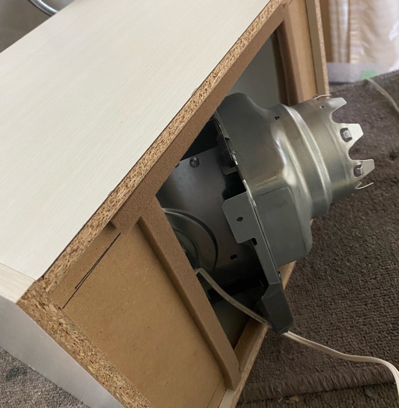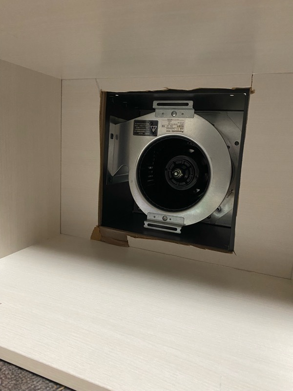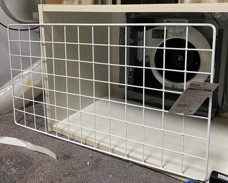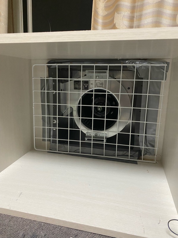 ファンの下は隙間があり、奥面の板はファンの重さに耐えれないので下に敷物が必要です。