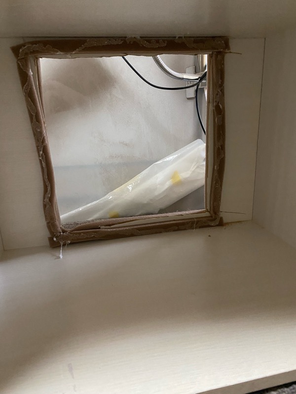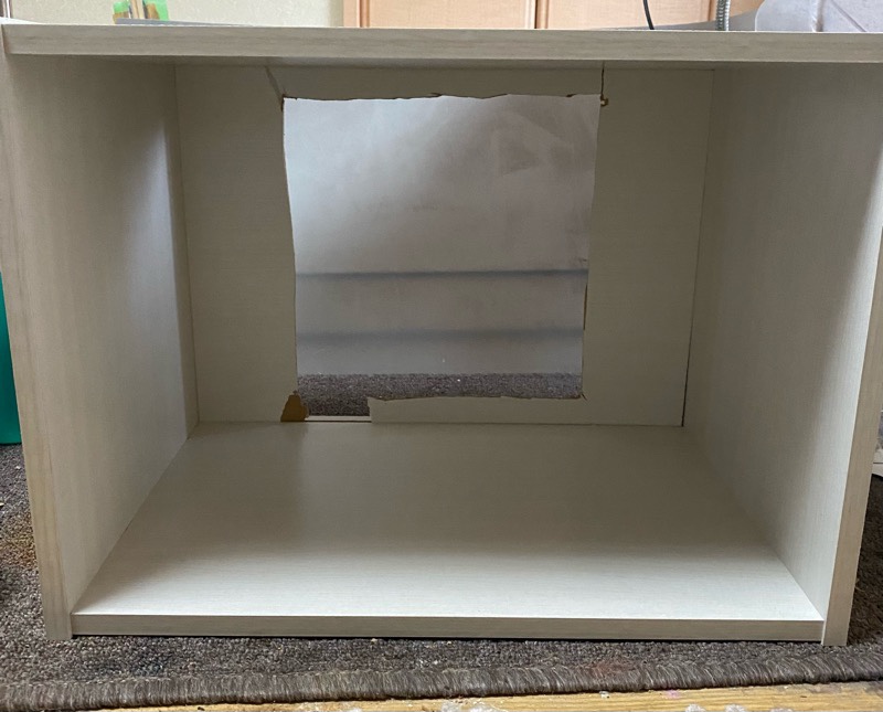 私はもう奥面があっちこっち壊れていたので、板をカットして無理やり外だししました。
