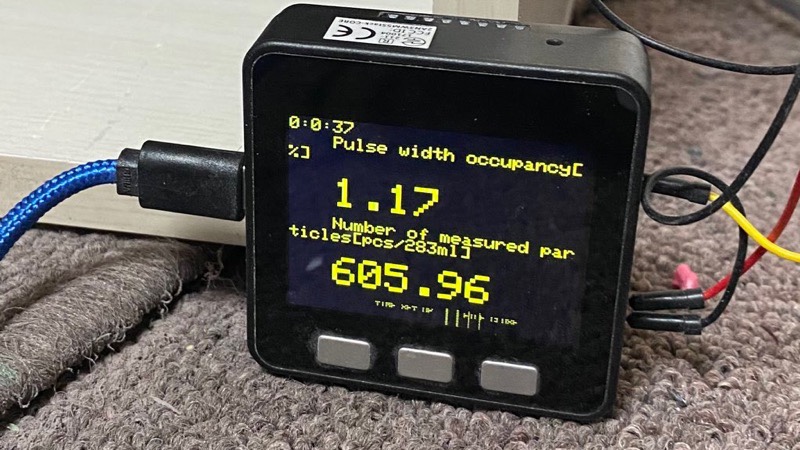 M5stackというマニアックな電子機器とダストセンサーを使い、どれくらいのミストがあるのかをみえるようにしました。