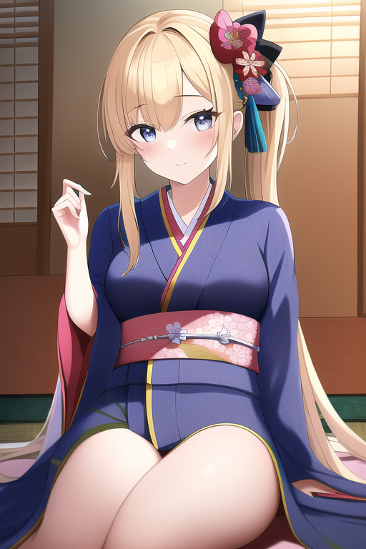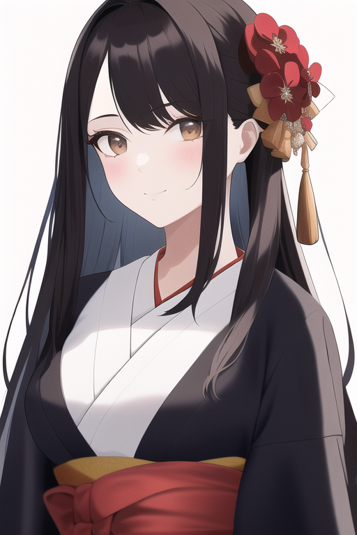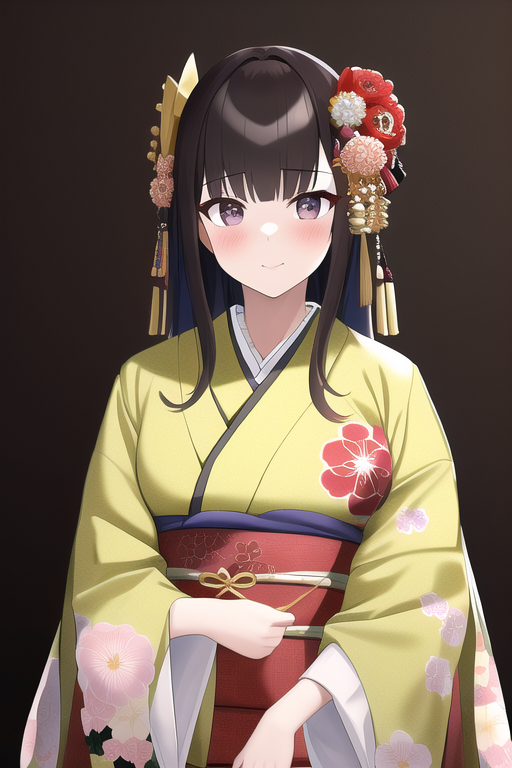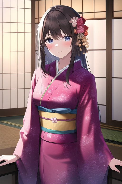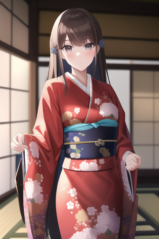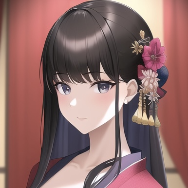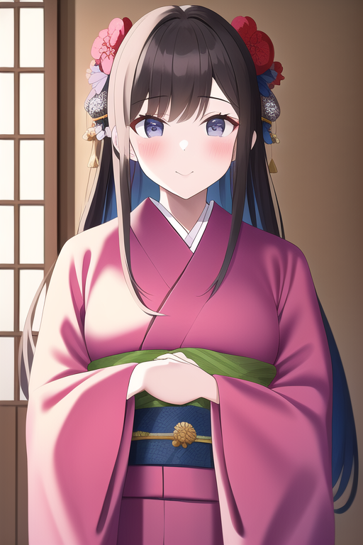 着物も書き込まれてきれいになっていますが、着物に花柄をなどを書き込みたい場合は別の呪文を足すと豪華な着物を描けます。