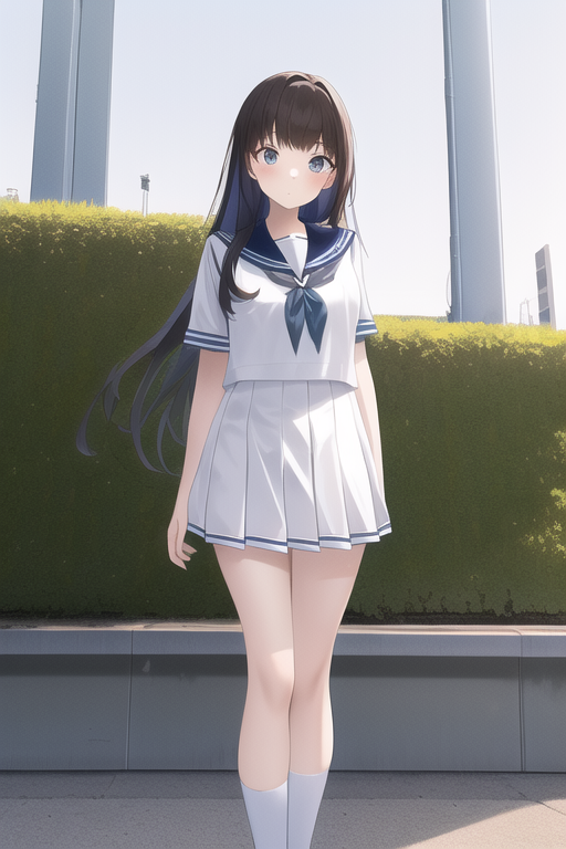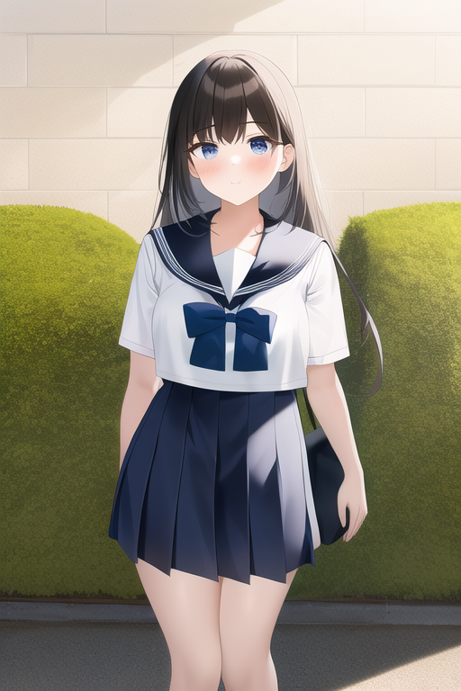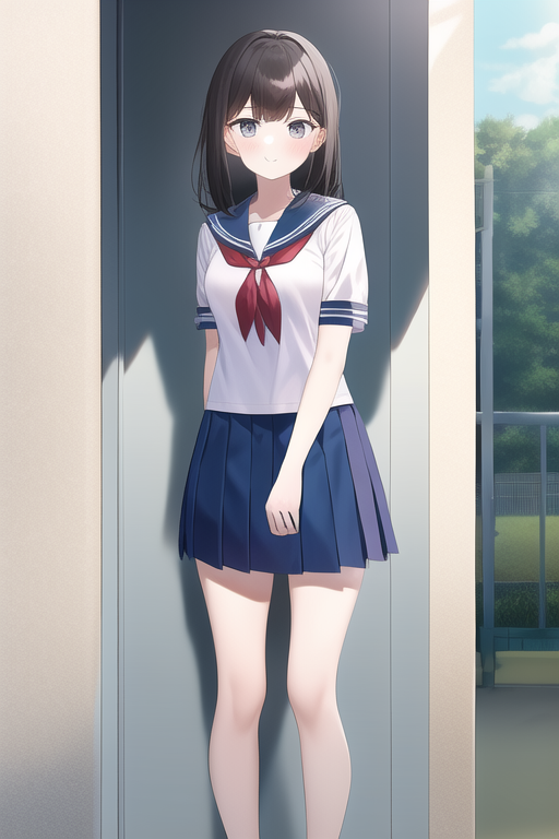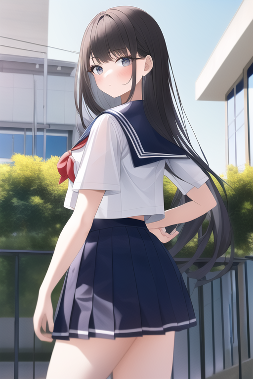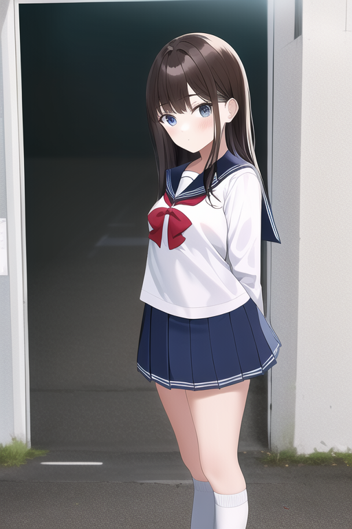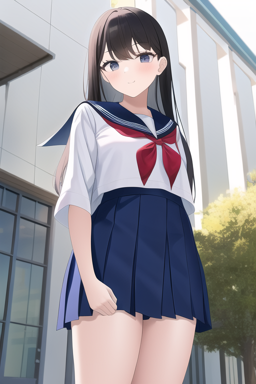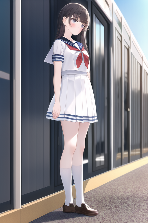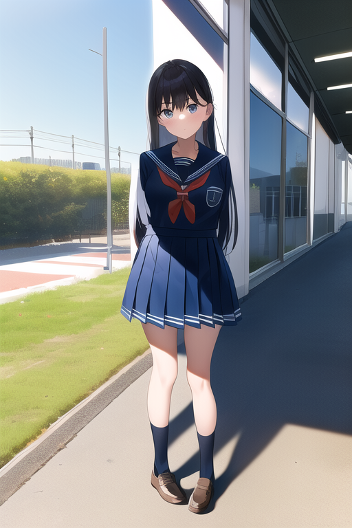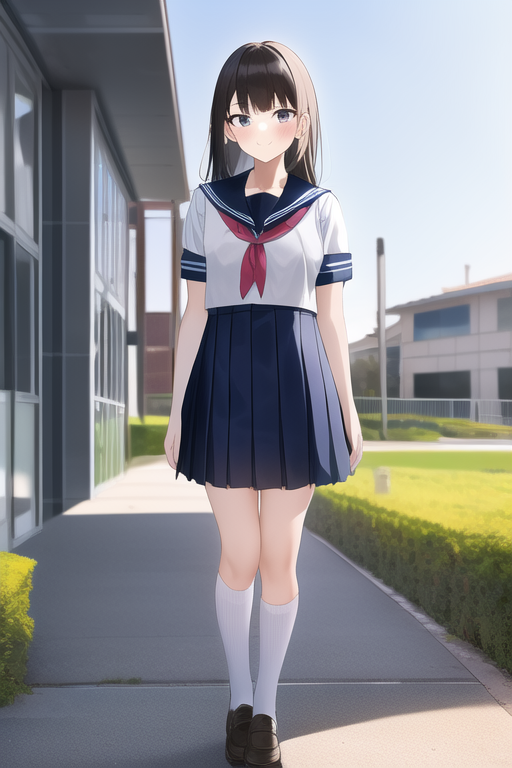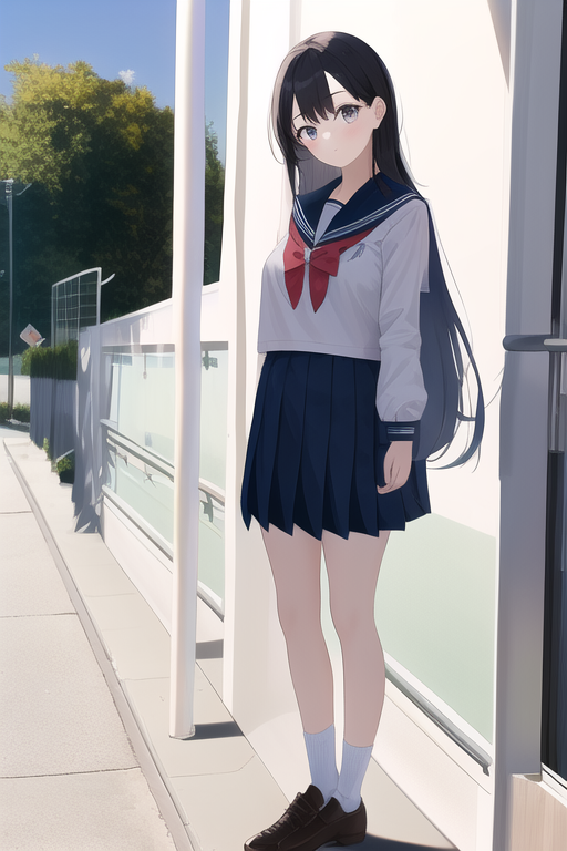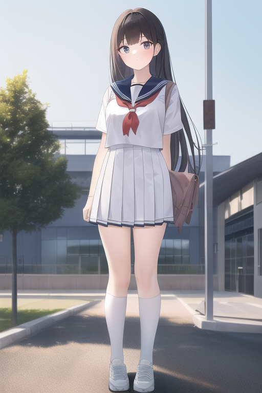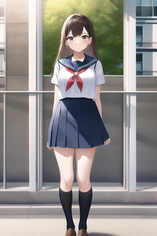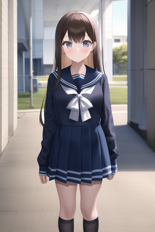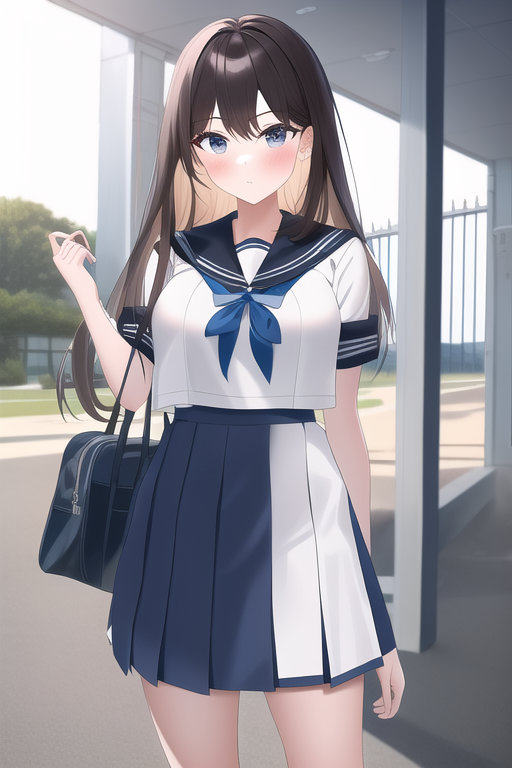 {{{masterpiece}}},{high quality},{high detailed},A high school girl in a sailor suit is standing in front of a school waiting for someone