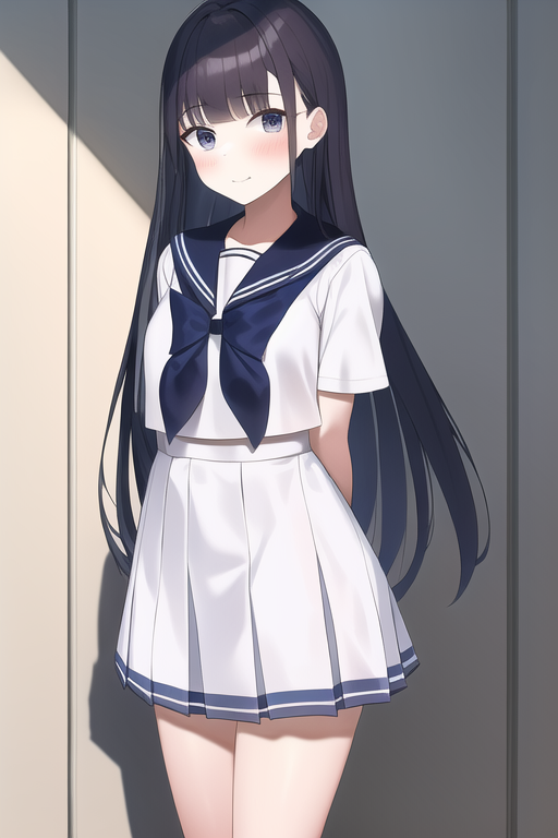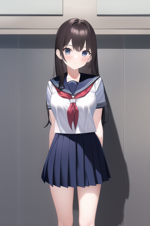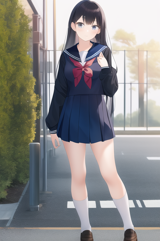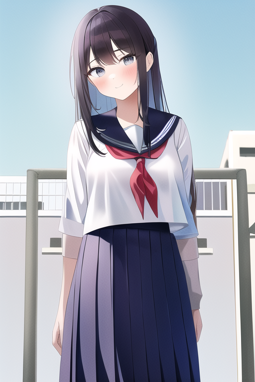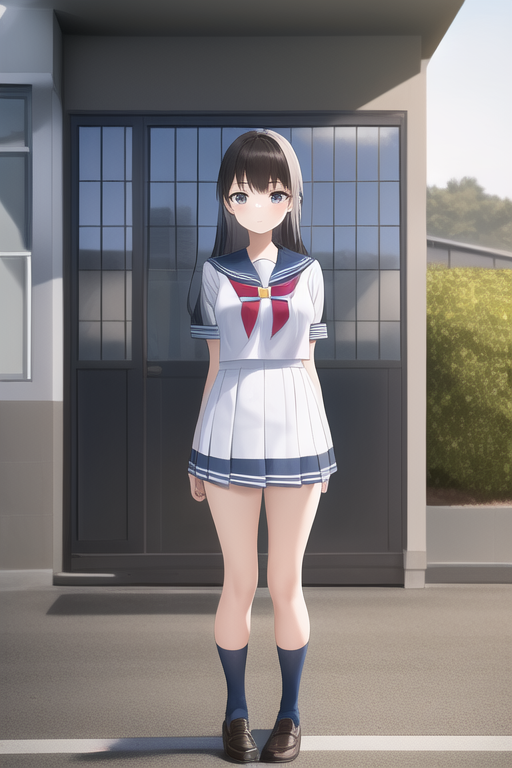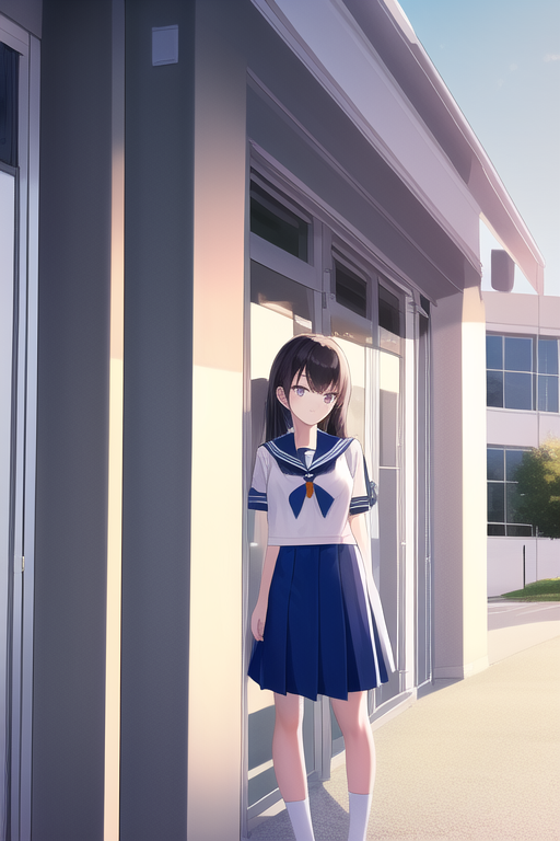 {high quality} ,A high school girl in a sailor suit is standing in front of a school waiting for someone